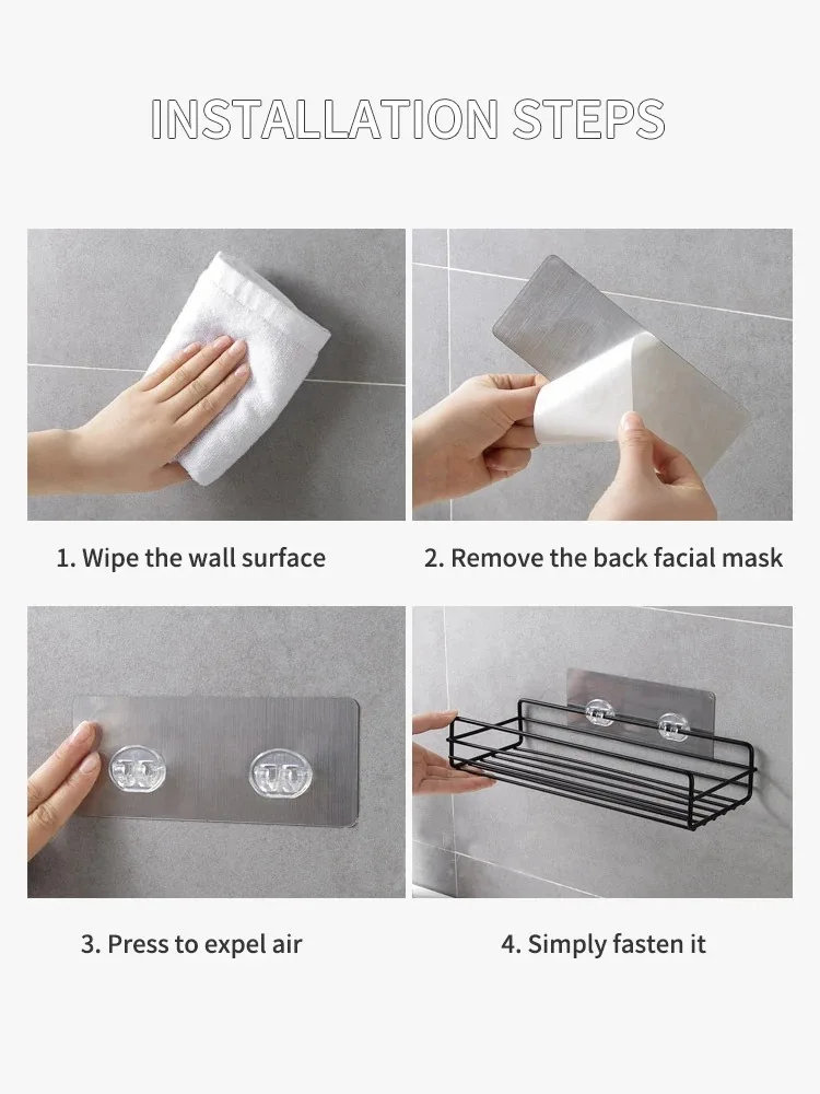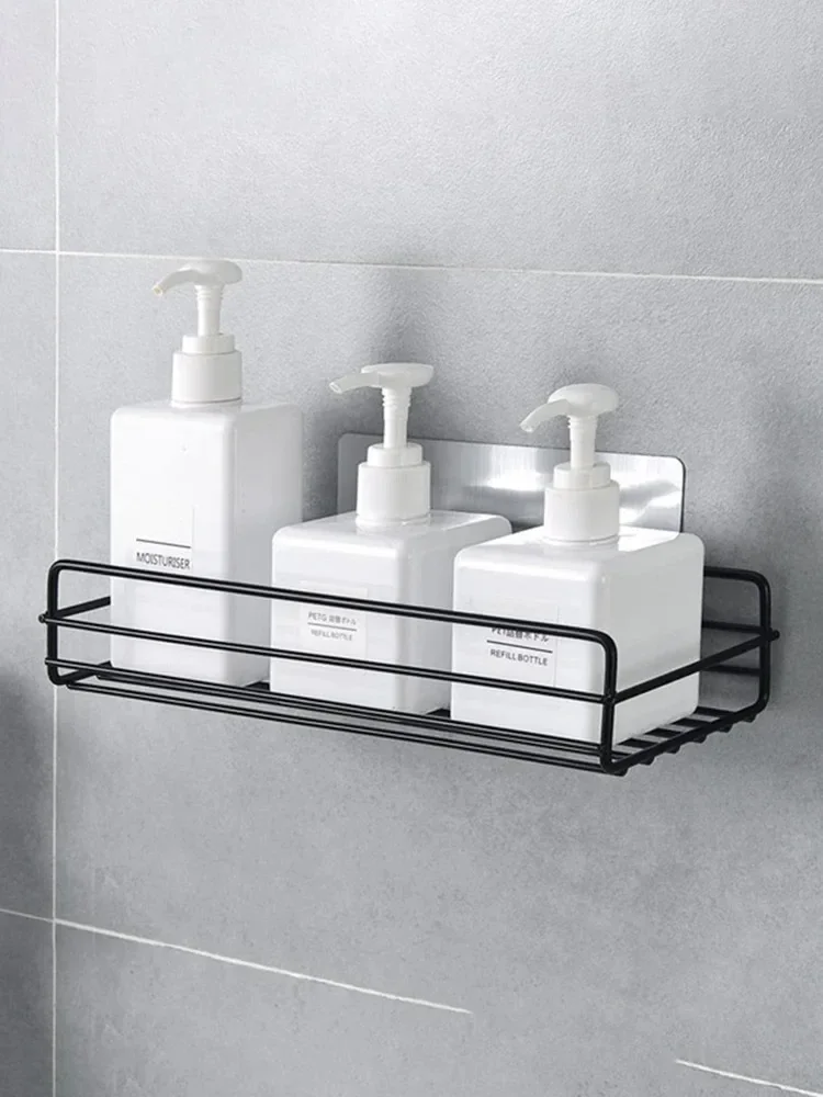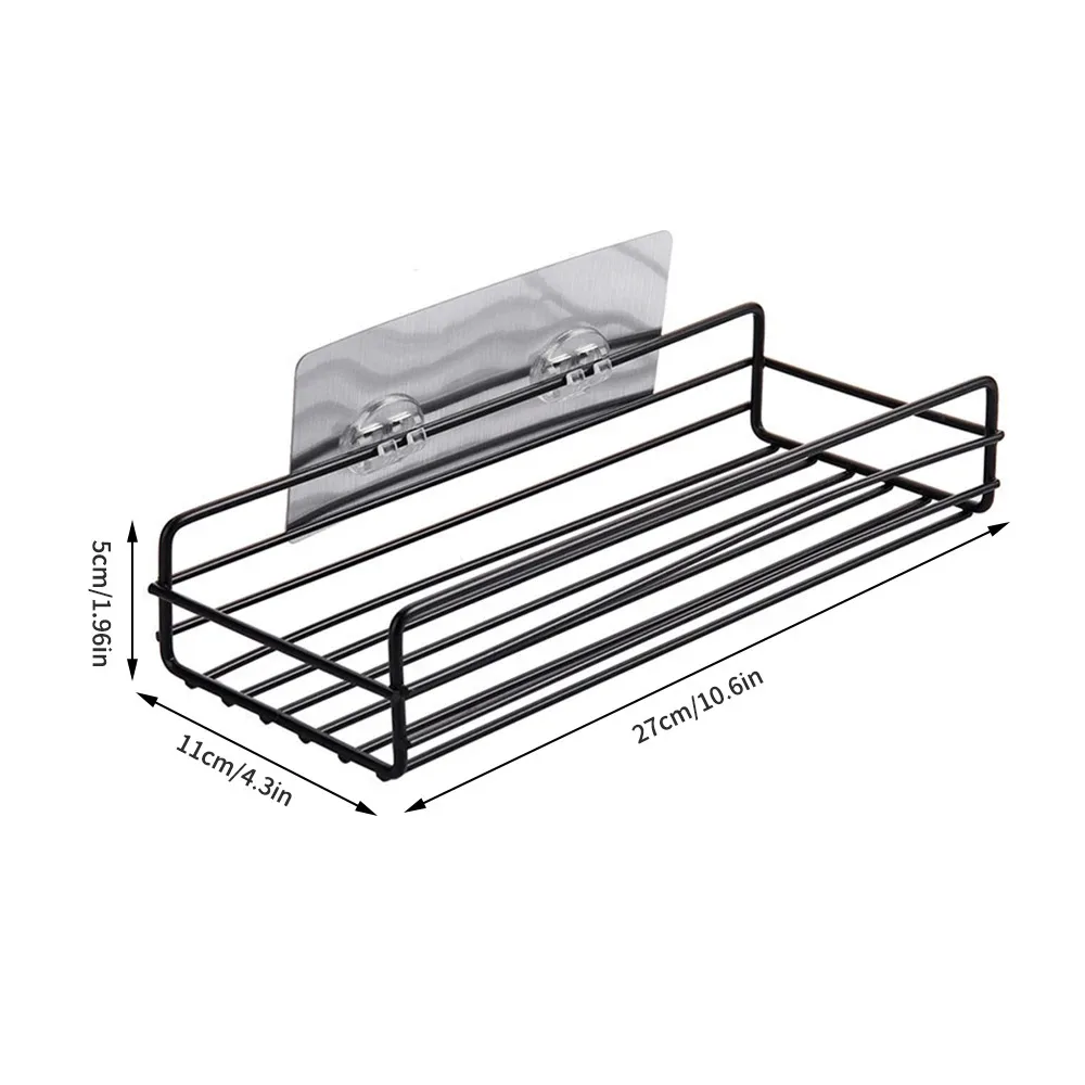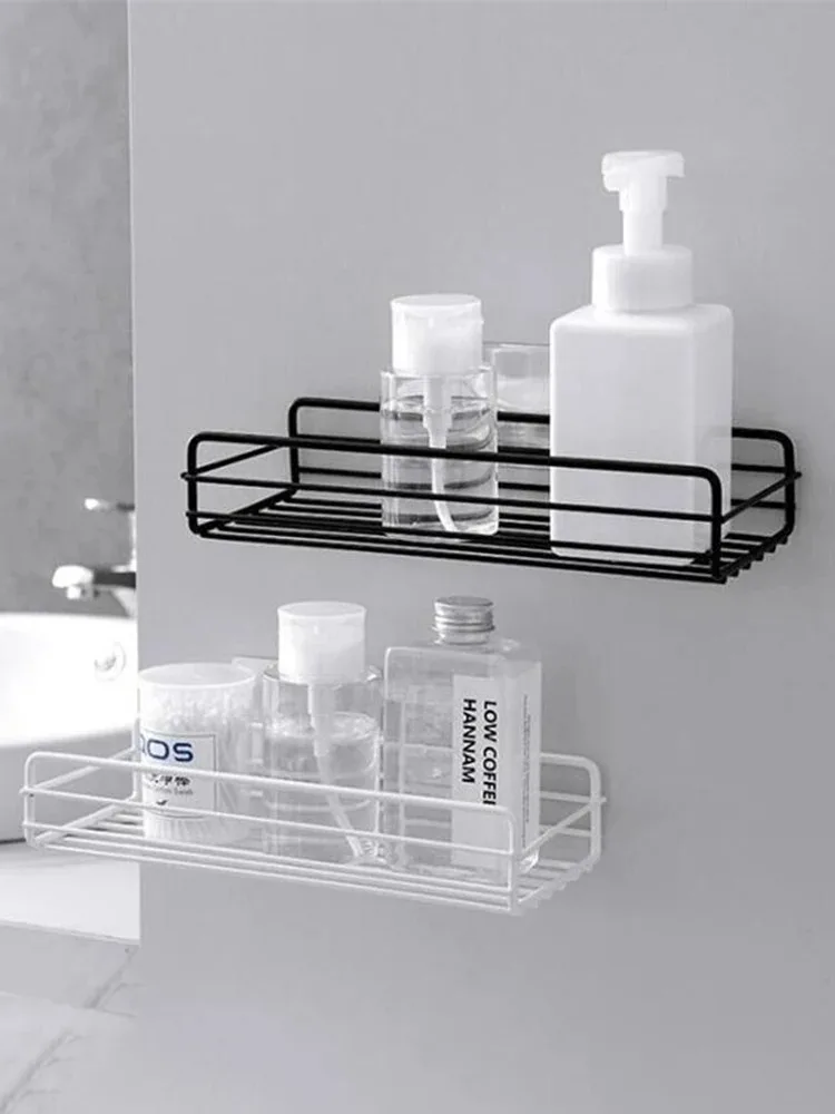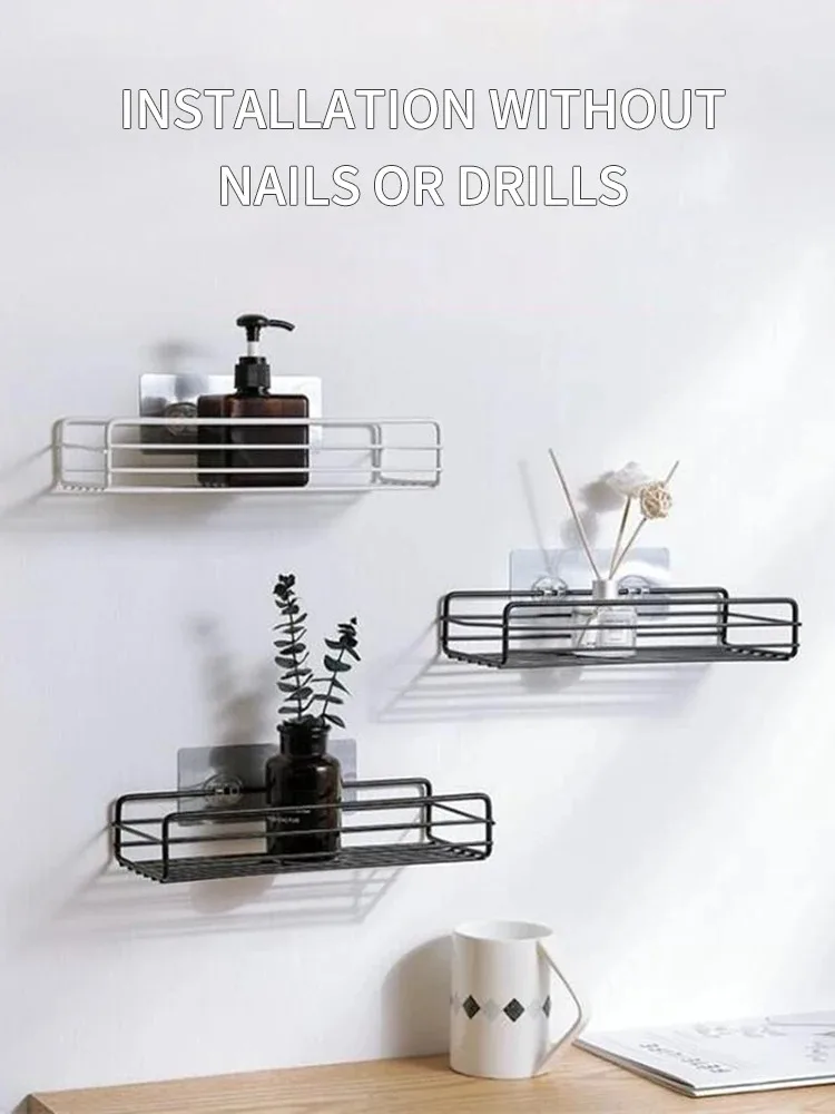 Support de rangement de salle de bain, étagère de rangement de cuisine, étagères noires, cadre d’angle, support de douche en fer, support de caddie monté sans poinçon