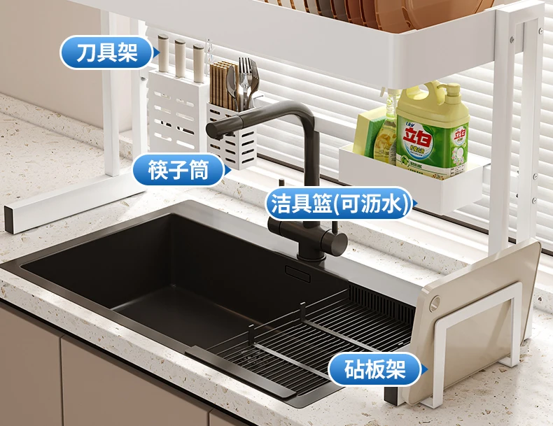 Support de rangement pour évier de cuisine, égouttoir à vaisselle pour usage domestique, organisateur de comptoir de cuisine multifonctionnel, porte-vaisselle pratiqueSupport de rangement pour évier de cuisine, égouttoir à vaisselle pour usage domestique, organisateur de comptoir de cuisine multifonctionnel, porte-vaisselle pratique