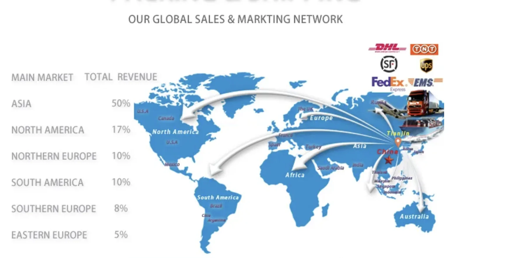 Moyens de chargement 2.Par conteneur de 40 pieds : 11,8 m (longueur) × 2.13 m (largeur) × 2,18 m (élevé) 3.Par fret en vrac |