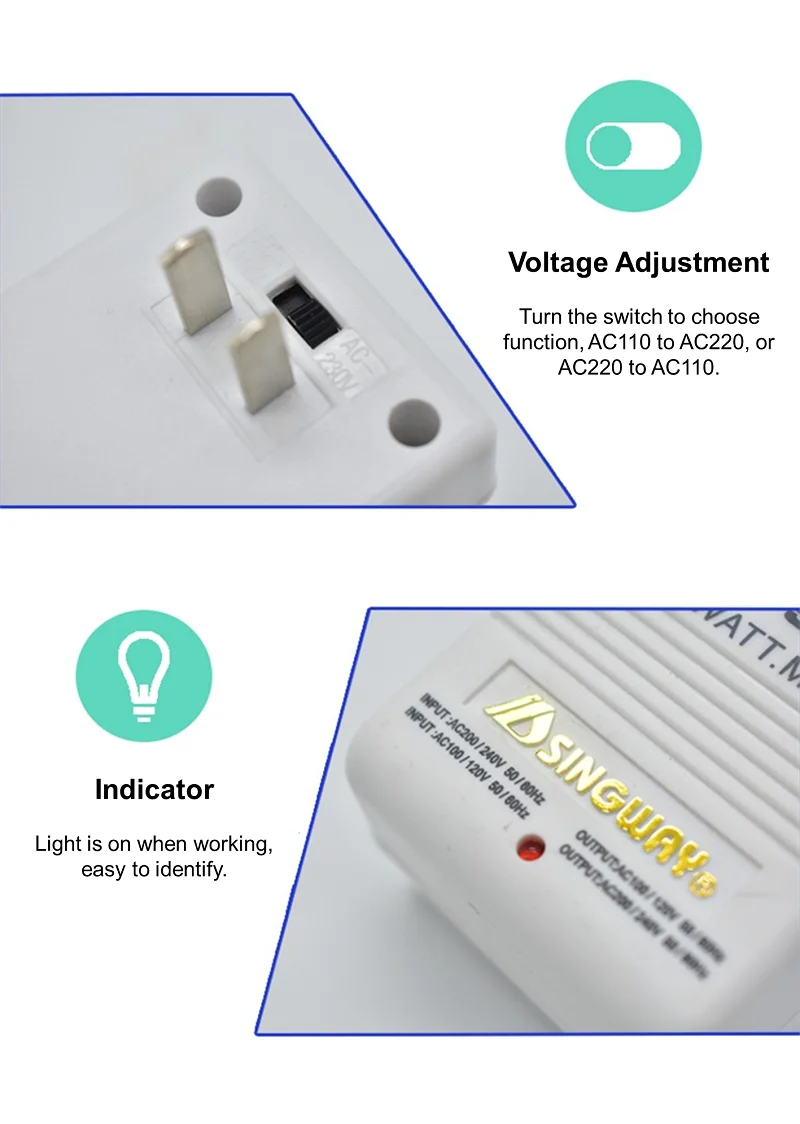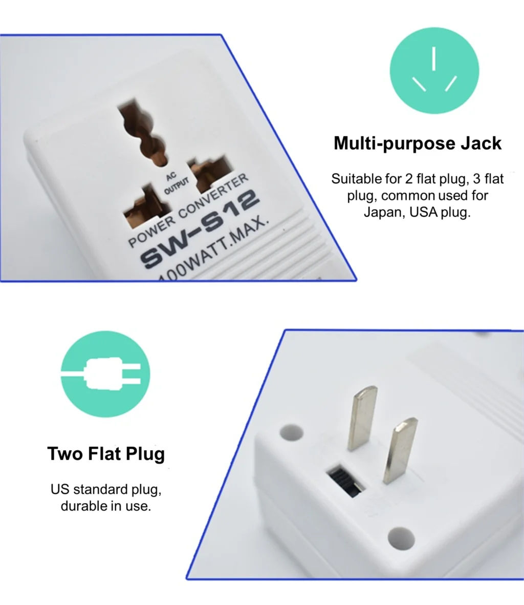 Le transformateur ne peut pas atteindre la puissance identifiée. SW-S12(100W) convient aux appareils électriques inférieurs à 40W.