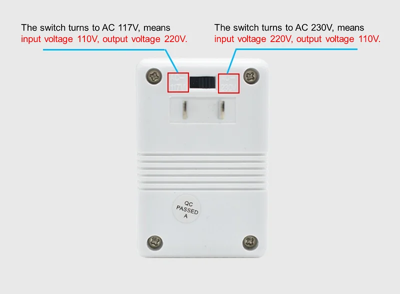 Tourner à AC 117V, signifie la tension d’entrée AC110V, la tension de sortie AC220V.
