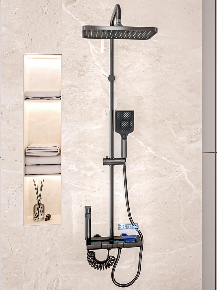 Description de l’affichage de la température de la lumière ambiante : production d’énergie au débit d’eau, micro générateur de débit d’eau intégré, sans batterie, sans prise