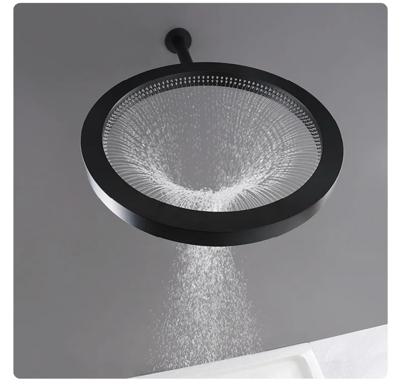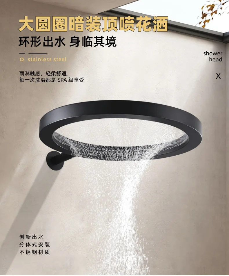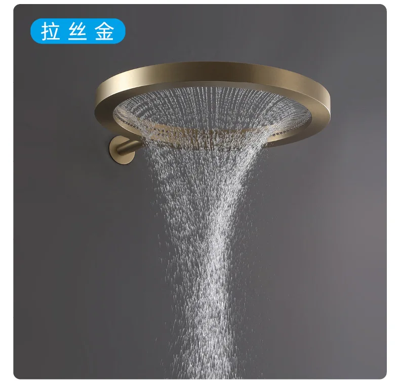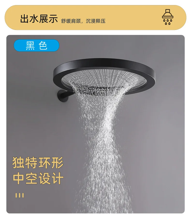 Système de douche dissimulé à anneau rond or/noir/gris, cascade de pluie, salle de bains, ensemble de robinets de douche intégrés avec bec de baignoireSystème de douche dissimulé à anneau rond or/noir/gris, cascade de pluie, salle de bains, ensemble de robinets de douche intégrés avec bec de baignoire