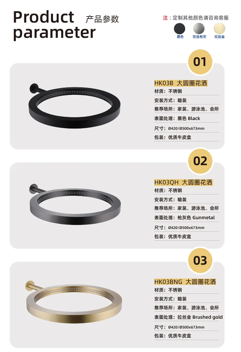 Soyez le premier à laisser votre avis sur “Système de douche dissimulé à anneau rond or/noir/gris, cascade de pluie, salle de bains, ensemble de robinets de douche intégrés avec bec de baignoire”