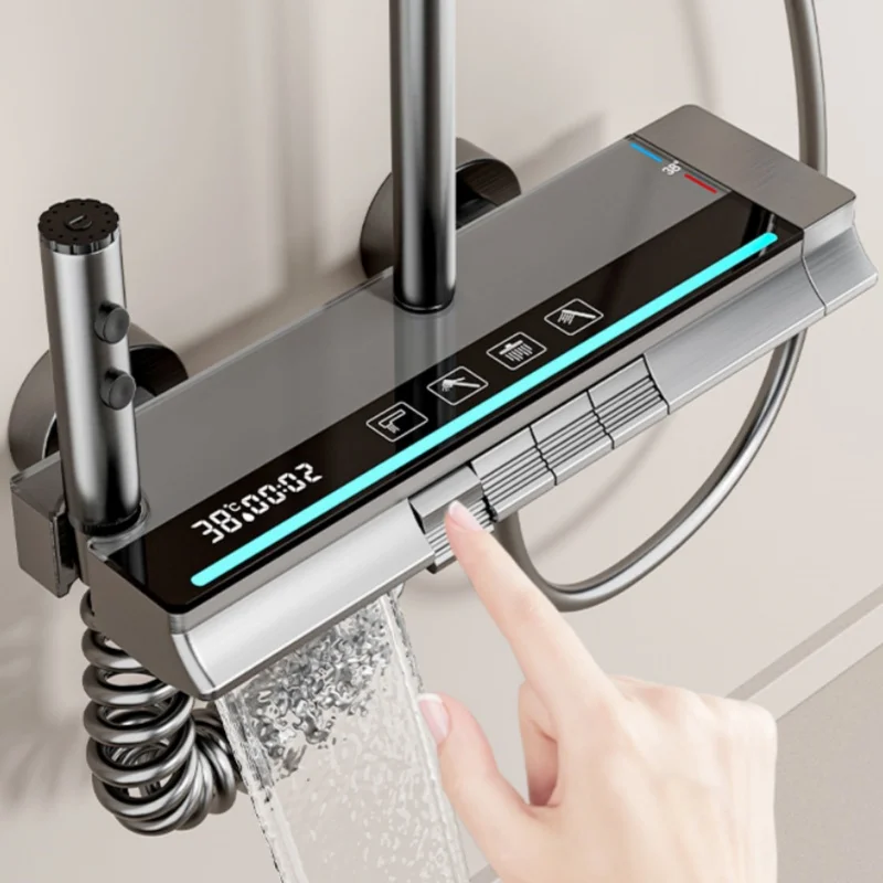 Le guichet supérieur peut être ajusté universellement. Le support de douchette à main peut ajuster la hauteur et l’angle d’inclinaison, ce qui convient aux besoins des différents utilisateurs.