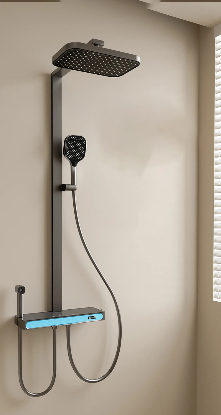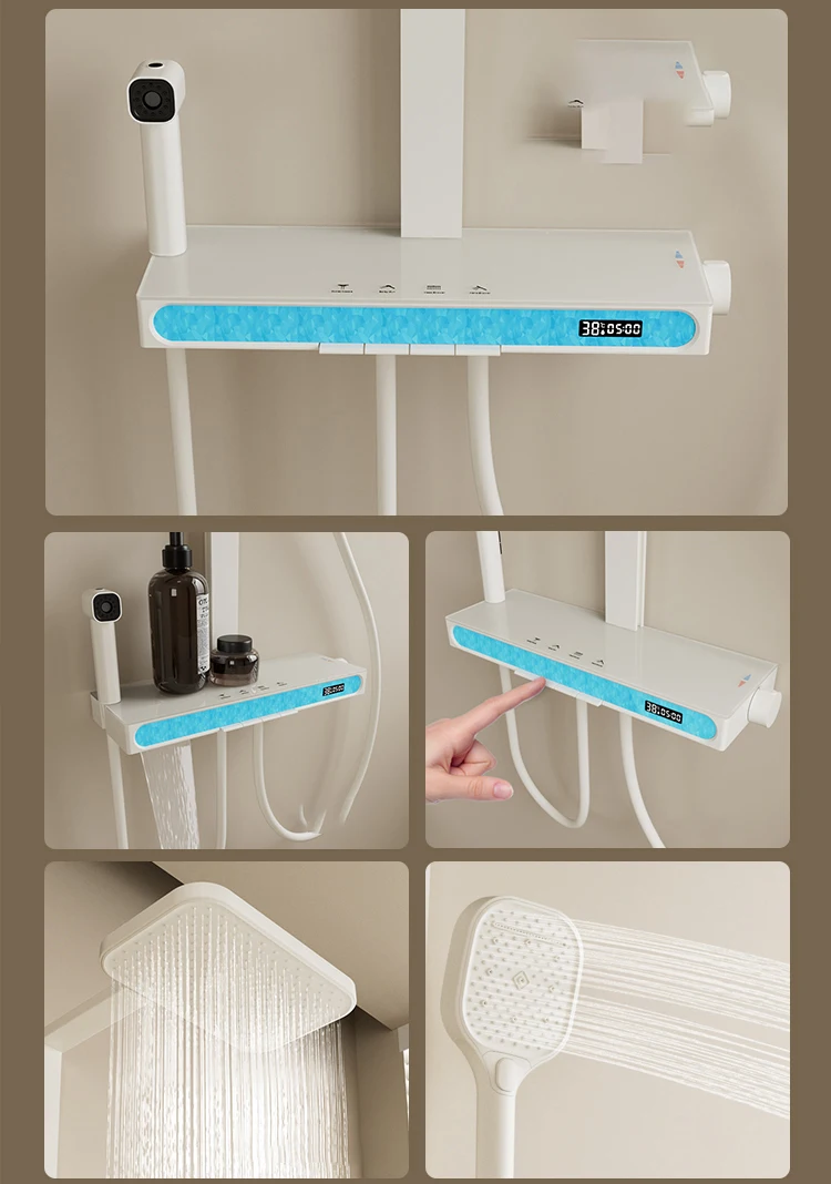 Multi-Functional Shower Experience: With a thermostatic faucet and multiple spray patterns (rain, jet, and massage), this shower system provides an unparalleled showering experience, allowing users to customize their water temperature and pressure to their liking.