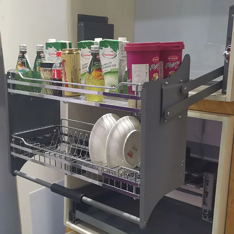 Armoire de cuisine moderne système de mécanisme de levage boissons alimentaires verticalement ascenseur tirage vers le bas rangement panier métallique étagères