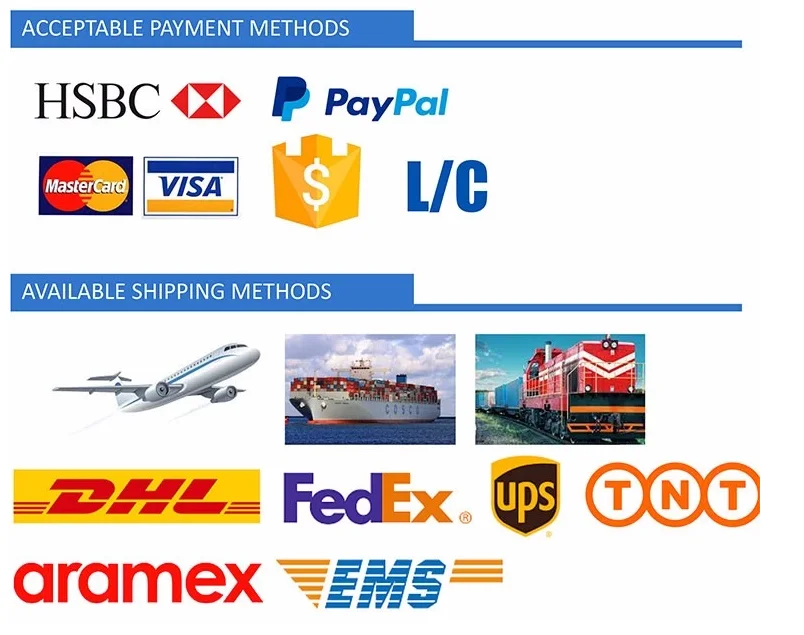 A2 : T/T Paiement anticipé partiel comme dépôt et solde avant la livraison.Nous vous montrerons les photos des produits et des forfaits avant de payer le solde.