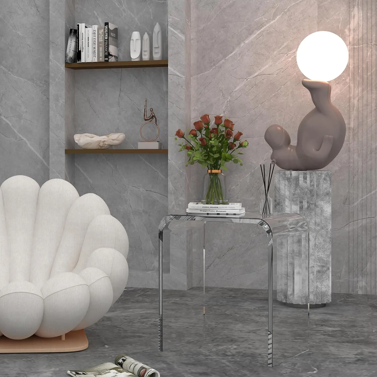 Table basse moderne tabouret acrylique Transparent Table d’appoint de lit en acrylique pour salon, chambre à coucher, baignoire