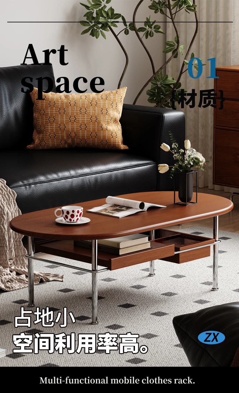 Table basse ovale avec pieds en métal, de luxe, avec tiroirs, Simple, Glamour, Unique, moderne, meubles de salonTable basse ovale avec pieds en métal, de luxe, avec tiroirs, Simple, Glamour, Unique, moderne, meubles de salon