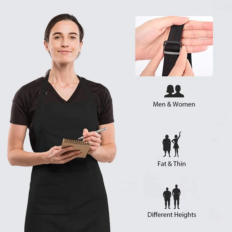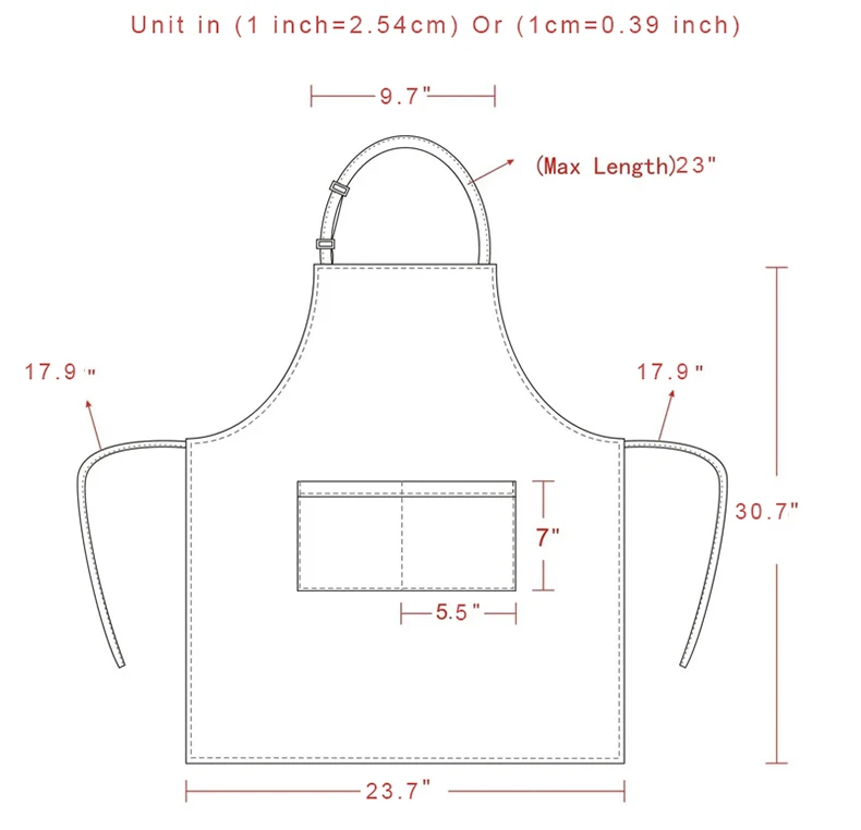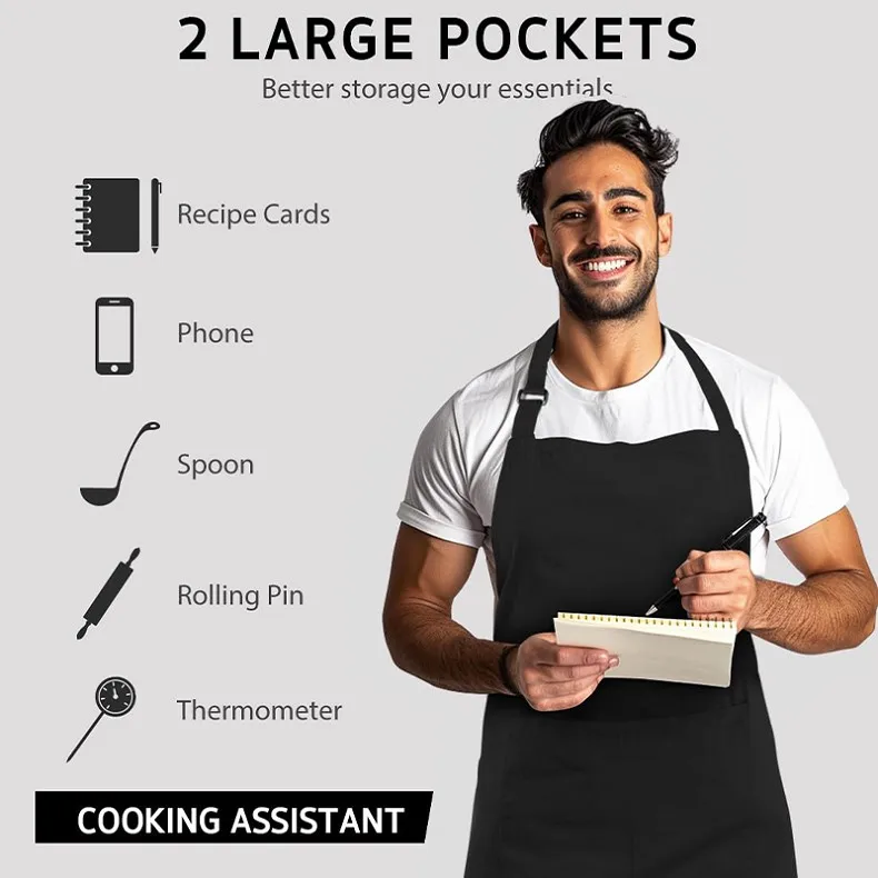 Placez 2 grandes poches à l’avant du tablier.Aide à contenir un thermomètre à viande, des glissades de gril, des cartes de recettes, etc.Parfait pour l’entretien ou le gourmet de la maison.Plus besoin de perdre de temps en courant d’avant en arrière à la recherche de vos affaires.