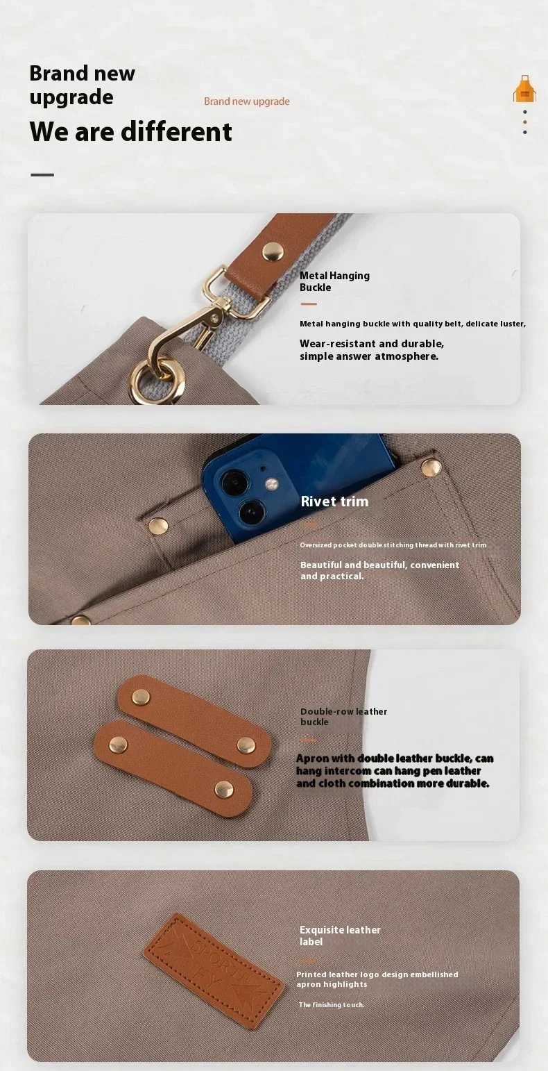 Ce tablier est composé de toile et est résistant à l’usure et durable. Le design adopte un style à la mode et une correspondance des couleurs, adapté à diverses occasions. Fonctionnellement, il peut empêcher efficacement les taches alimentaires des éclaboussures sur les vêtements et fournir également un certain degré de protection. Pour les commerçants, ce type de tablier ne peut pas être utilisé uniquement comme vêtement de travail, mais est également préféré par les gens en raison d’un niveau d’apparence relativement élevé. Moreover, comme c’est un produit prêt à l’emploi, il peut être utilisé directement après l’achat sans attendre d’un long cycle de production. Ceci est sans doute une grande avantage pour les clients qui doivent changer dans les nouveaux vêtements. Veuillez noter que dû les différences dans les ordinateurs et les adaptateurs d’affichage informatique, il y avait des différences de couleurs légères entre le produit réel et les images affichées. Veuillez accepter que les dimensions sont mesurées manuellement, il y avait peut être un erreur de 1 à 2 cm. Nous j’espère pour votre compréhension