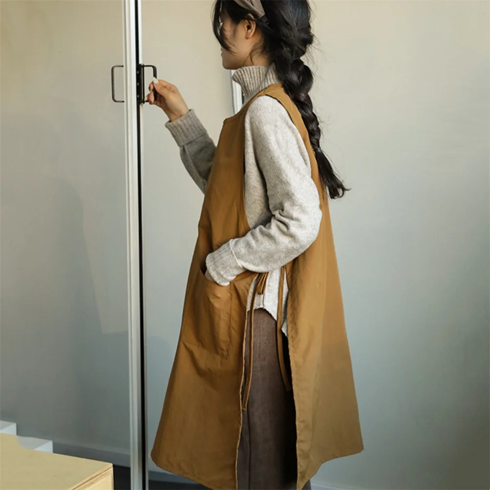 Tablier léger et Long imperméable avec poche, tablier de travail sans manches Anti-salissure pour femmes, pour cuisine, Salon, café à ongles.