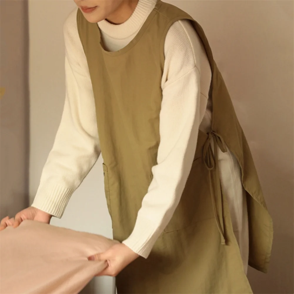 Lightweight Long Waterproof Apron Vest with Pocket Anti-dirty Women’s Sleeveless Work Apron for Kitchen Salon Nail Coffee Shop.