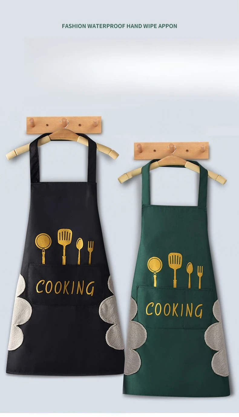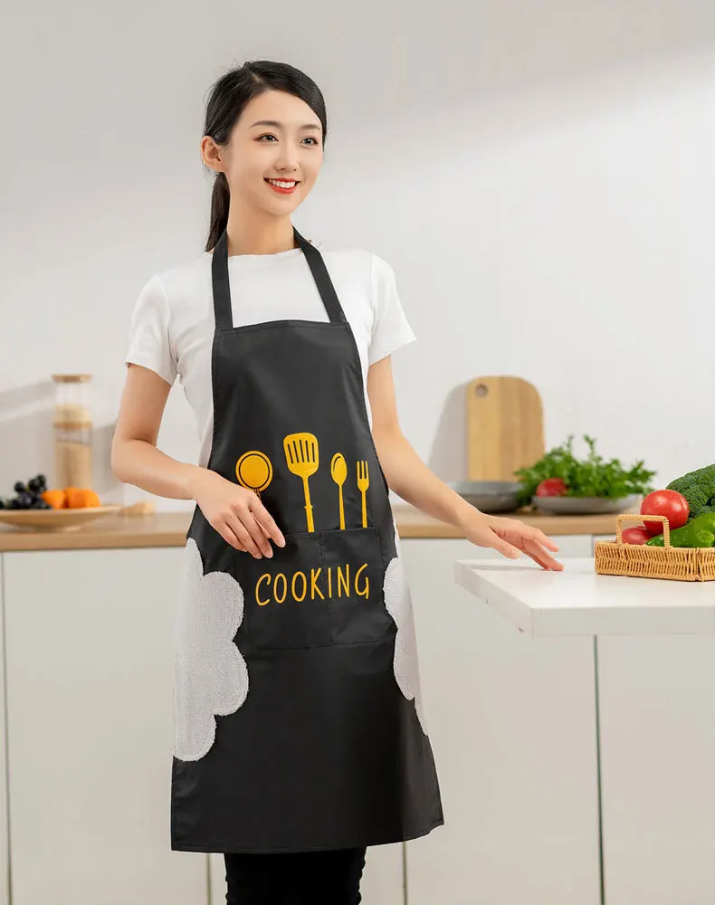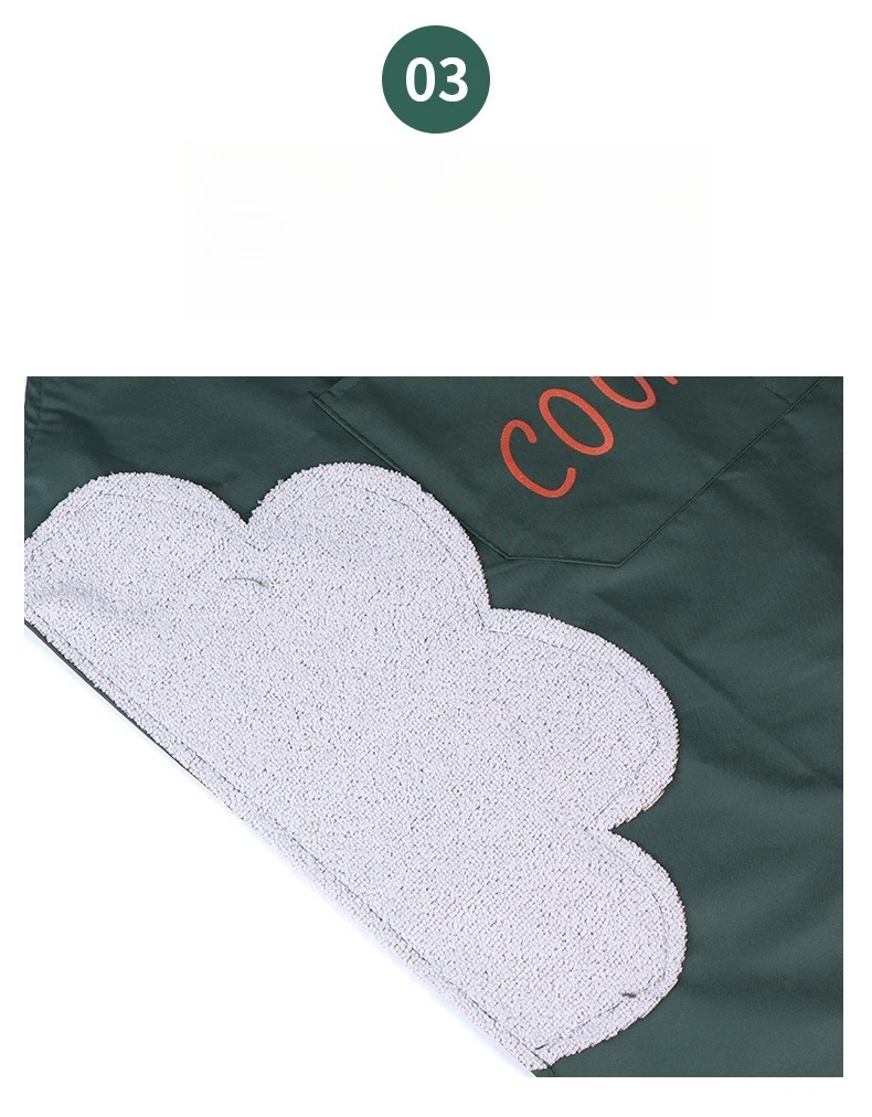 Ce tablier de cuisine est cousu avec 2 essuie-mains en velours corail, qui essuyable, imperméable et résistant à l’huile.