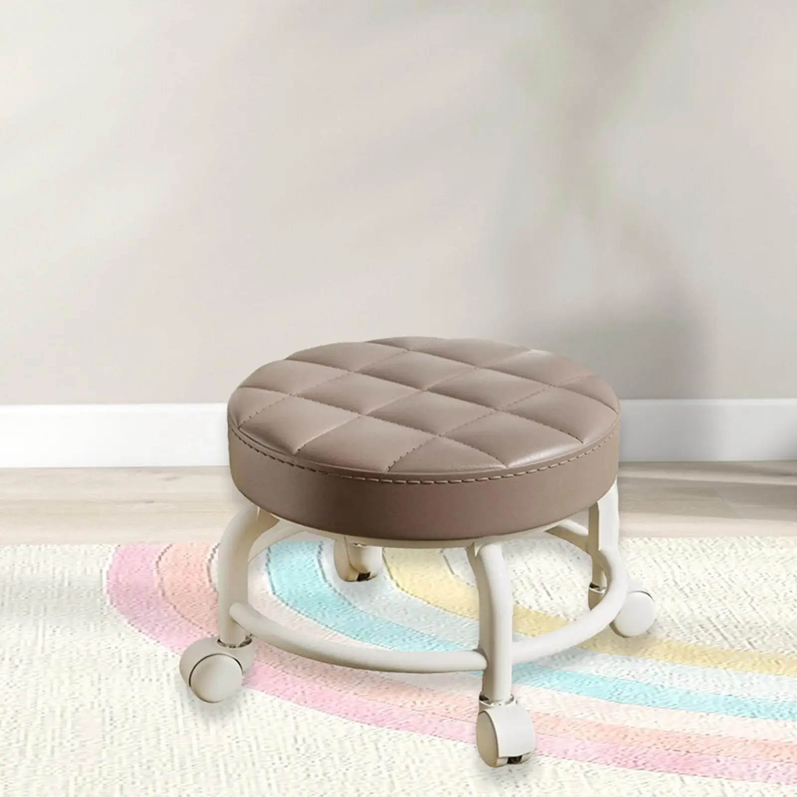 - MainKey2: low round rolling stool with wheels PU Leather