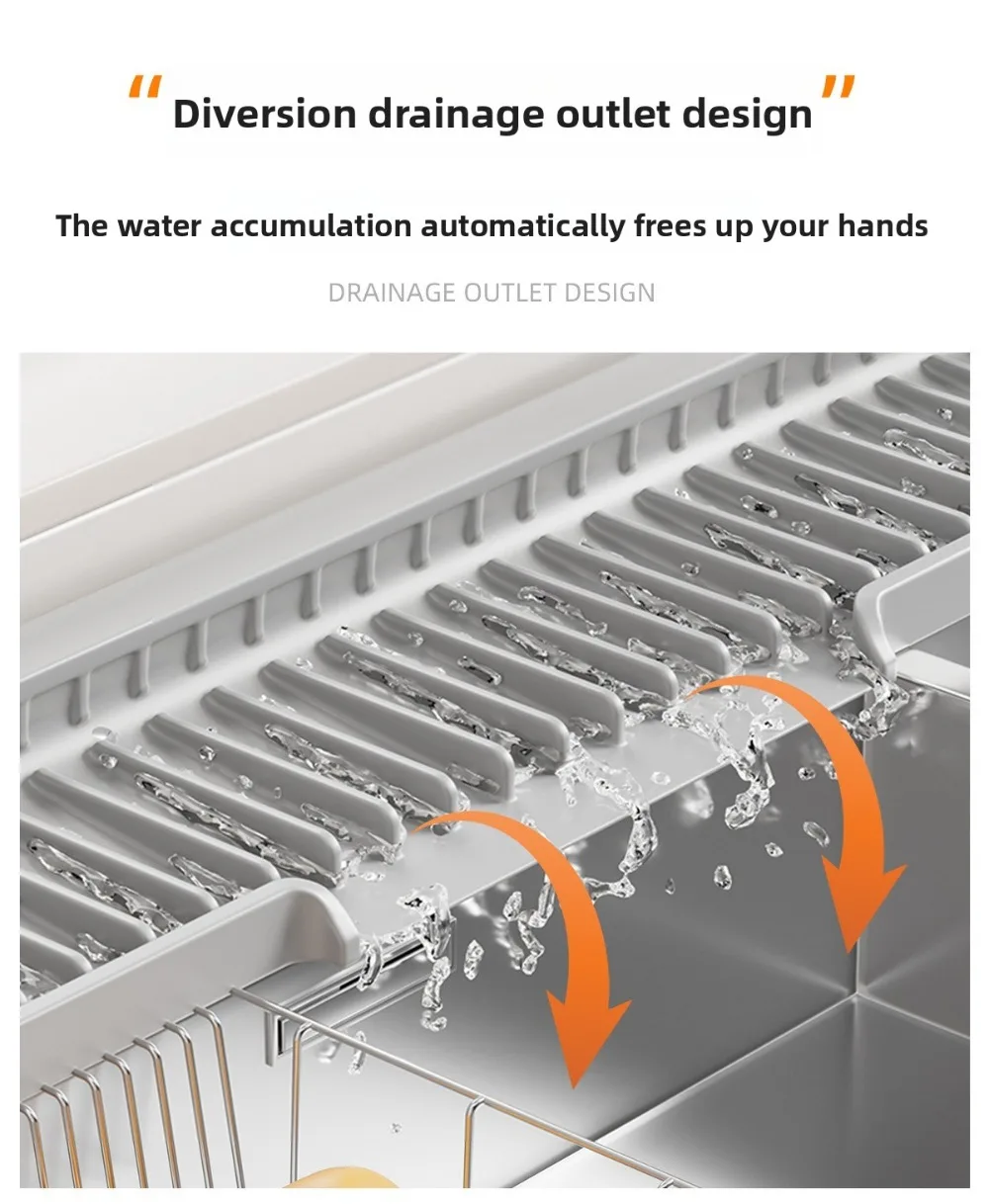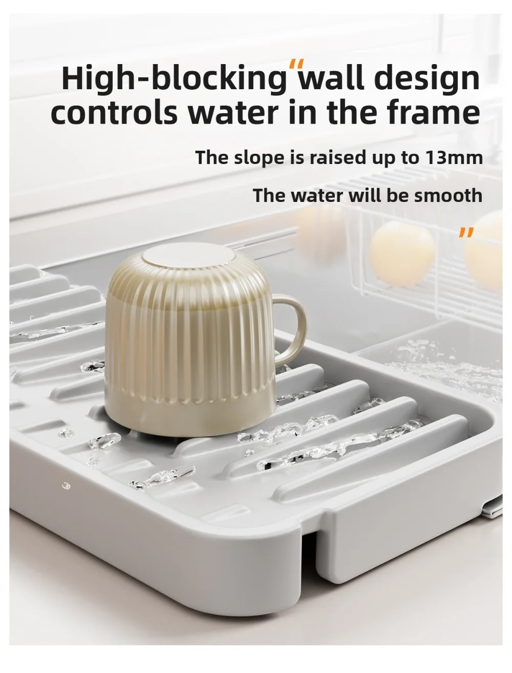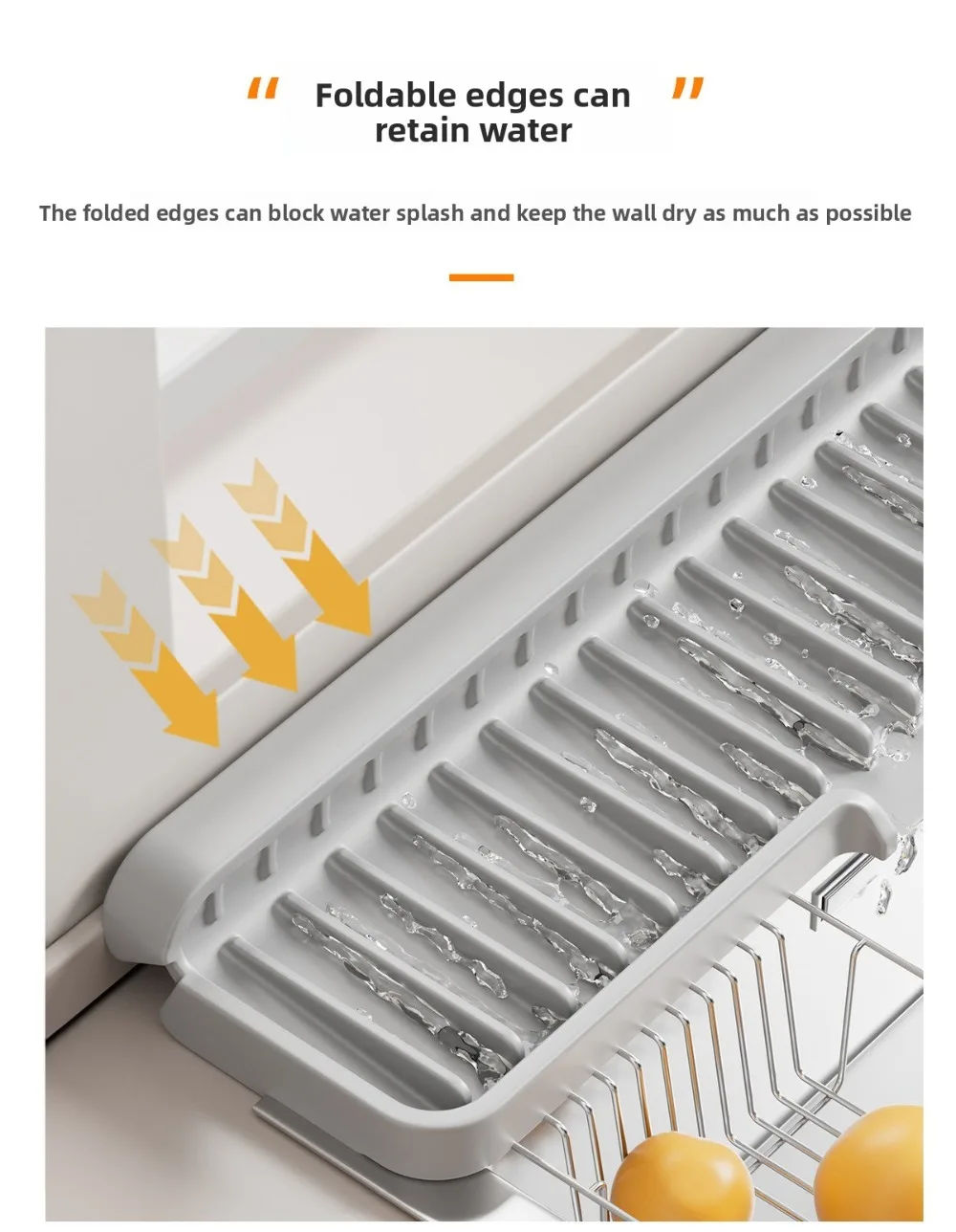 1. Conception anti-éclaboussures : le drain d’évier en pente comprend un bord étroit qui empêche efficacement l’eau des éclaboussures sur votre comptoir, gardez votre cuisine propre et sèche.