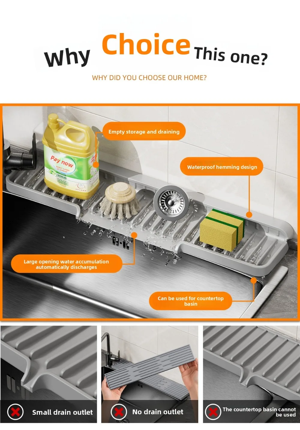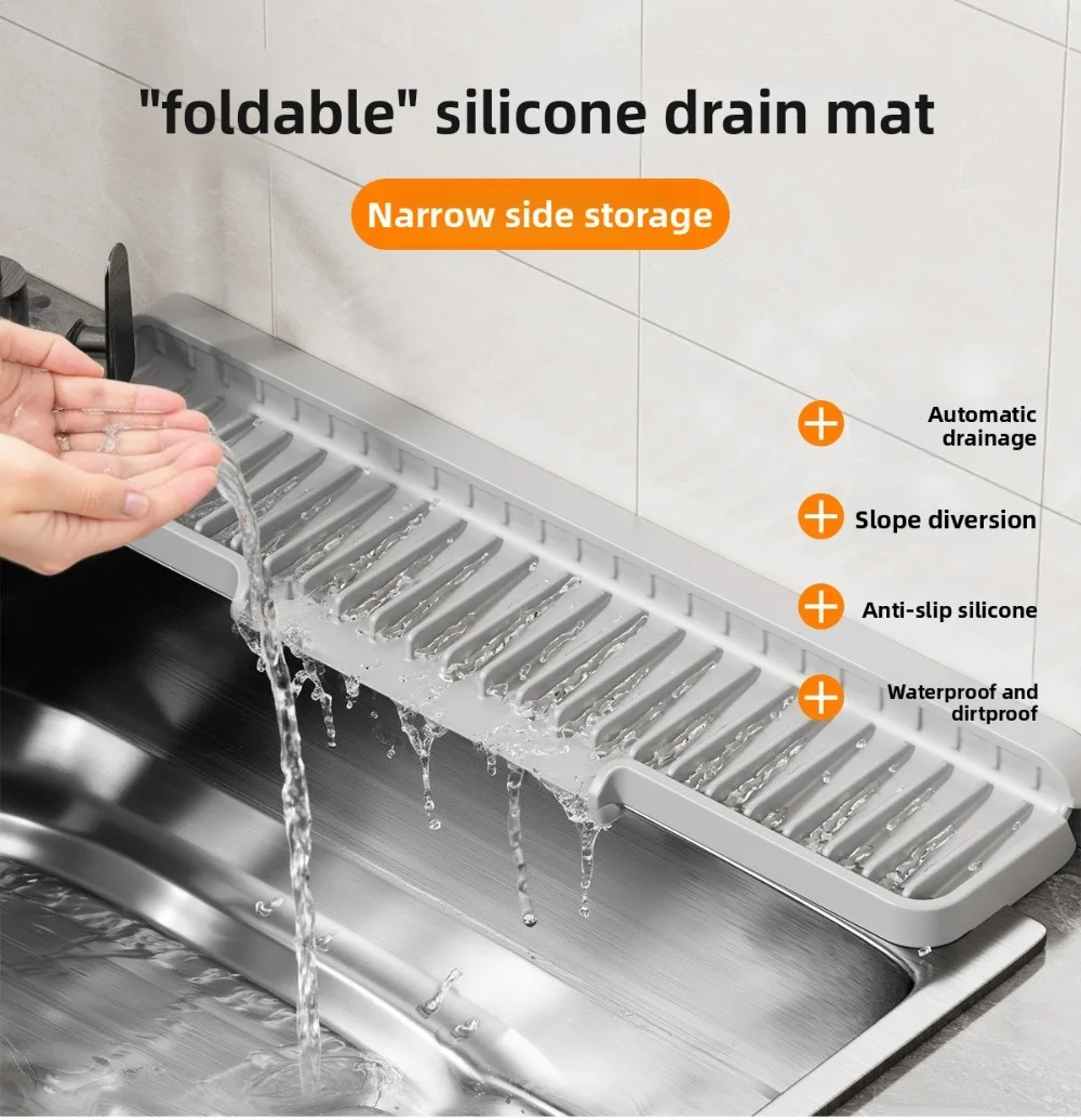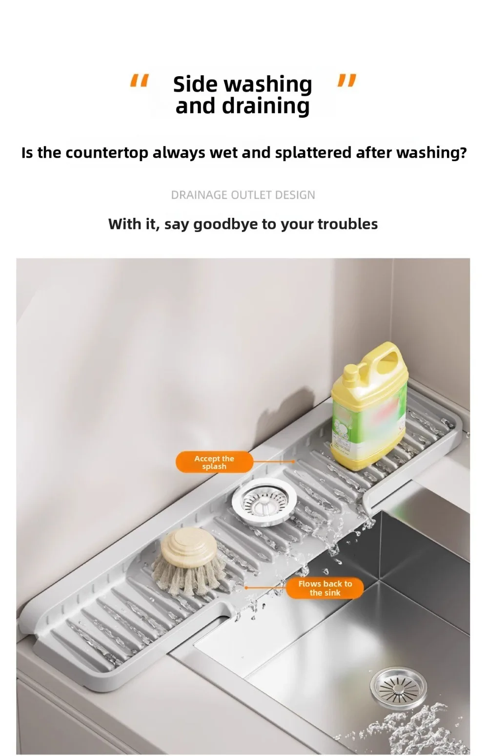 1. Splash-Proof Design: The slope sink drain pad features a narrow edge that effectively prevents water from splashing onto your countertop, keeping your kitchen clean and dry.