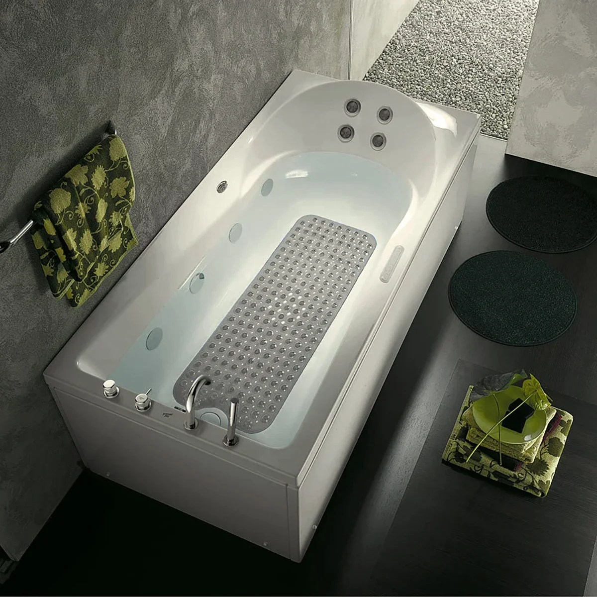 Tapis de baignoire antidérapant 100x40CM, tapis de Massage pour salle de bain, douche, toilettes lavables, tapis de sol en PVC avec ventouses, trous de vidange