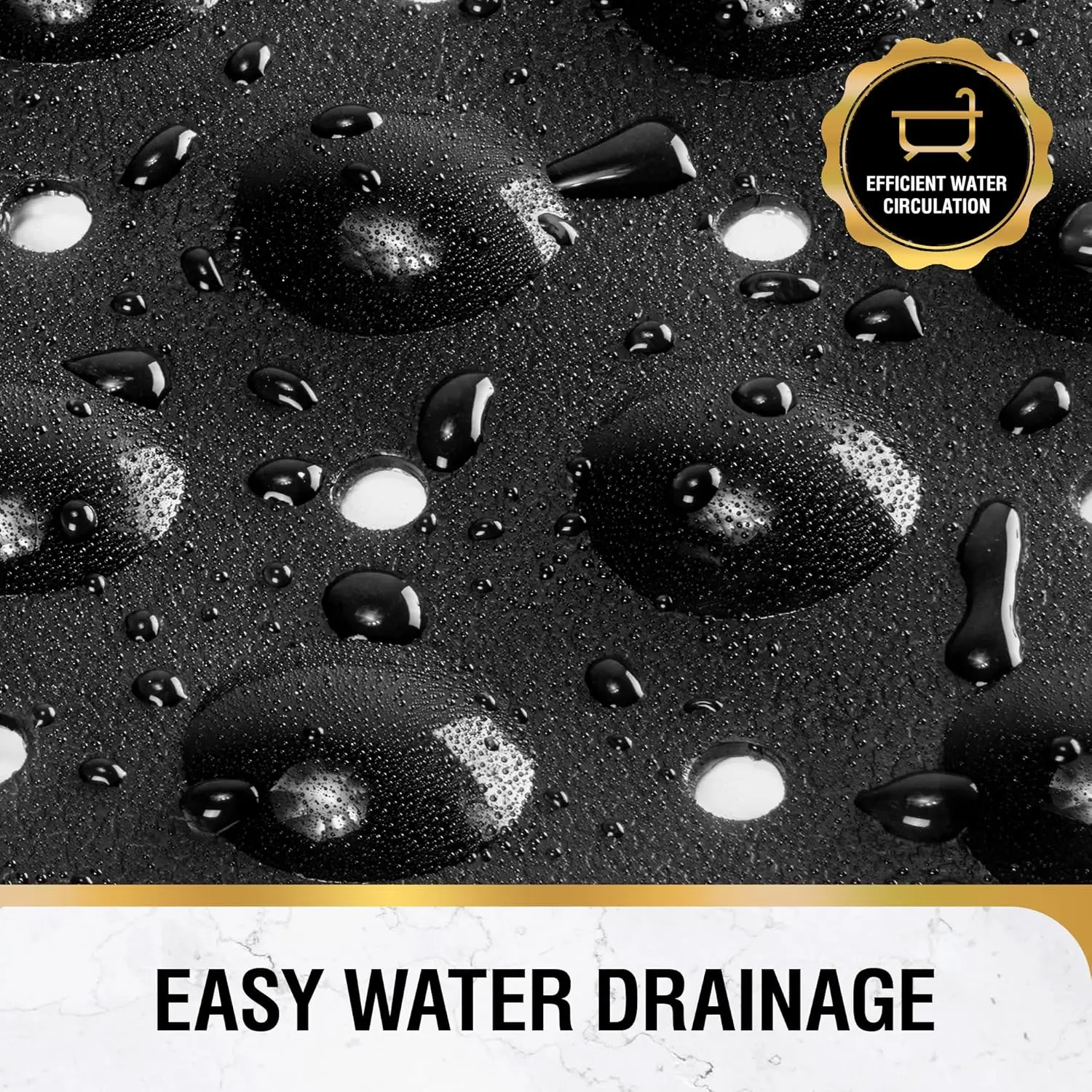 Texture de massage— pétrir la plante des pieds avec une surface semblable à un galet, apportant une détente pendant la douche ; Le tapis est recouvert de trous de drainage qui éliminent rapidement l’eau et les taches de savon, offrant ainsi une agréable douche pieds nus.