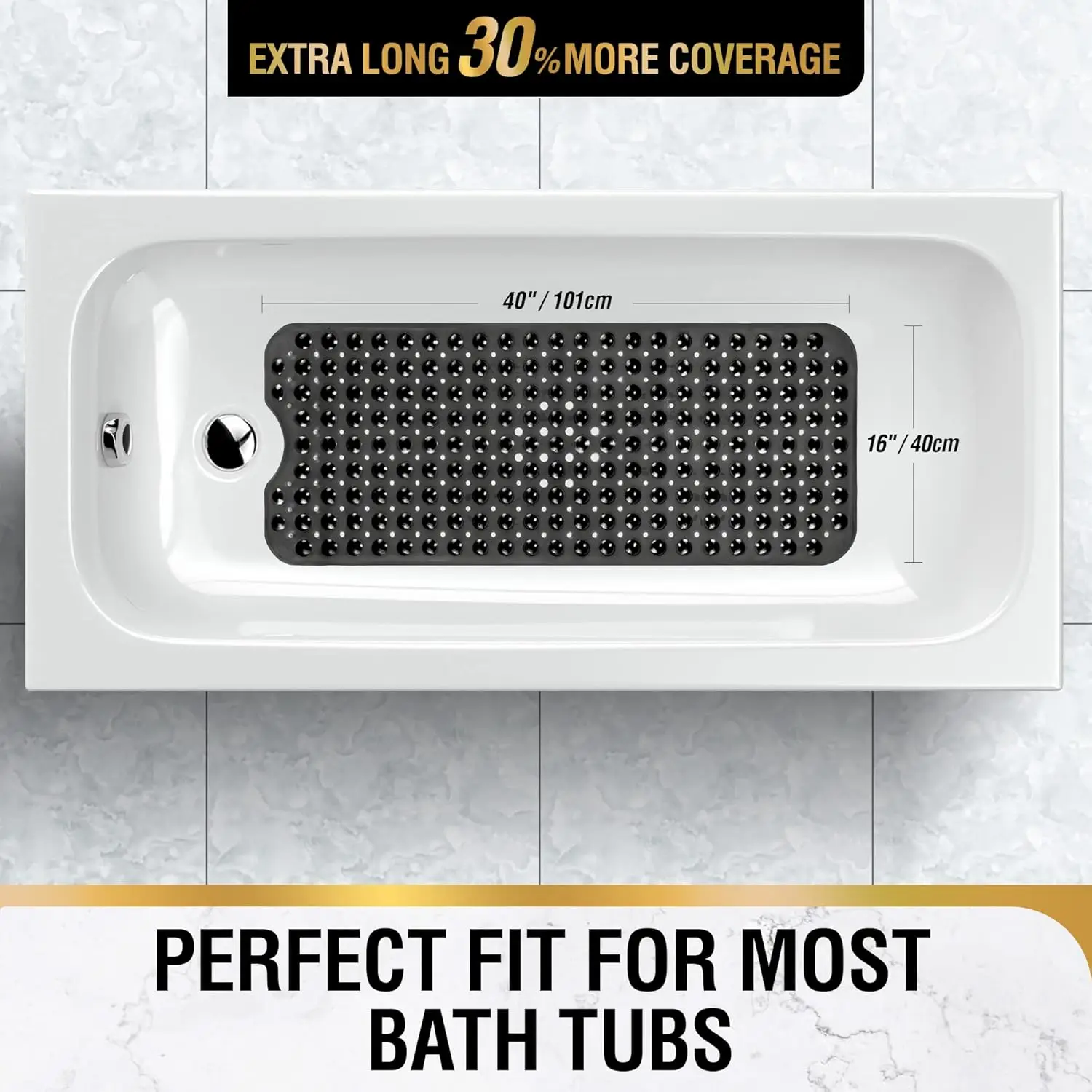 Tapis de baignoire extra long avec ventouses