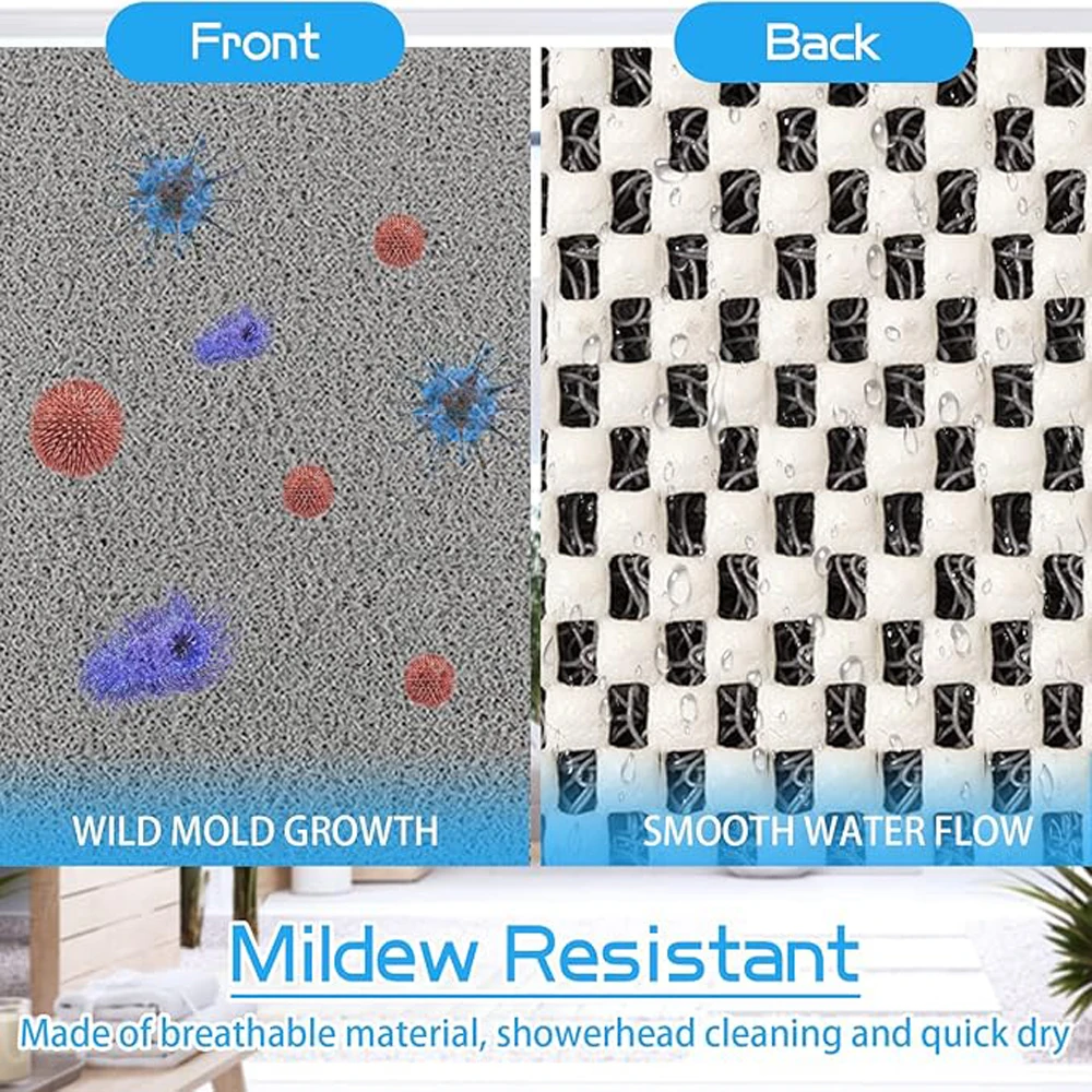 Superior Drainage Performance: The innovative hollow loop surface combined with a lattice bottom design results in numerous drain holes. This feature facilitates efficient water and air circulation, effectively preventing the water and stains on the shower slip mat. The mat dries quickly and stays clean, ensuring optimal hygiene and comfort.