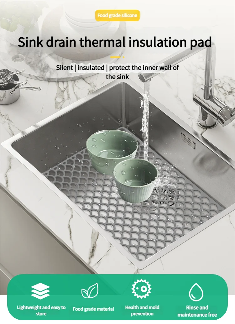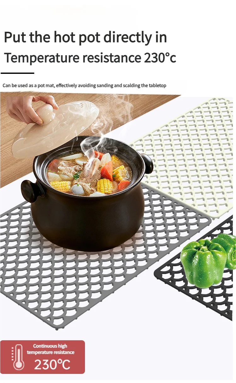 Tapis d’évier en silicone respectueux de l’environnement, coussin d’isolation thermique, dissipation thermique rapide et protège efficacement le bureau.