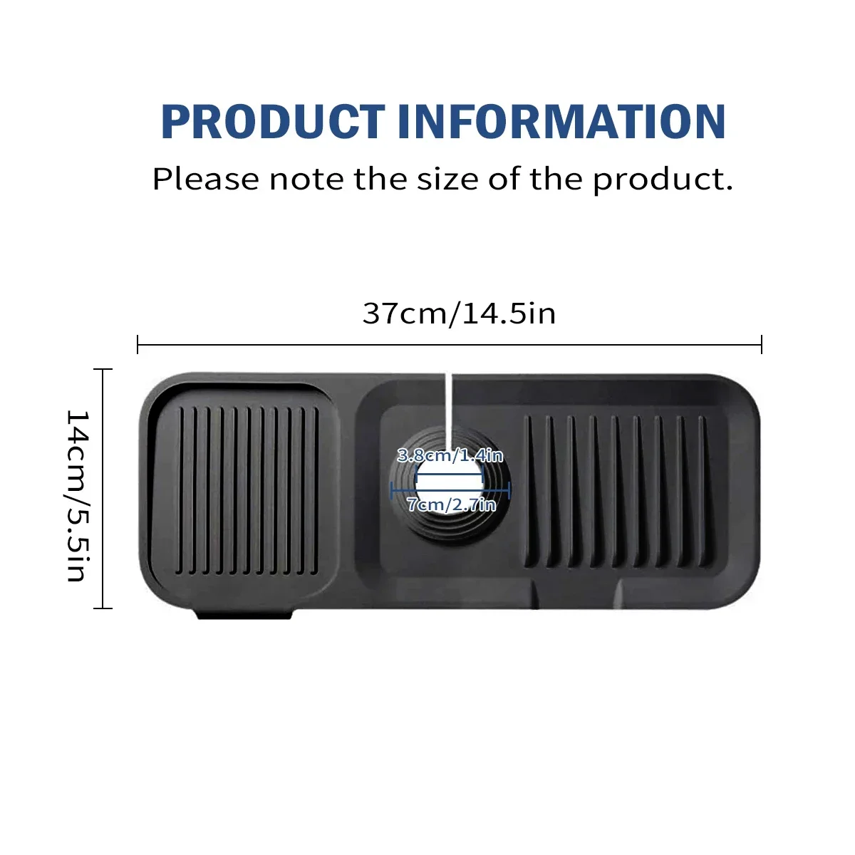 【APPLICATIONS MULTI-UNCTIONNELES】 Il n’est pas seulement un protège-éclaboussures pour tapis de robinet, il a également un collecteur d’égouttement lavable pour robinet d’évier, un plateau à savon, un tapis de séchage de vaisselle. Pour la cuisine : mettre une éponge, un savon vaisselle, un détergent, une brosse et une bouteille. Pour salle de bain : mettre un nettoyant pour le visage, un rasoir, une tasse de brosse à dents. Utilisé comme un petit tapis de rangement, un tapis de vidange. C’est un gadget de cuisine et de salle de bain super pratique
