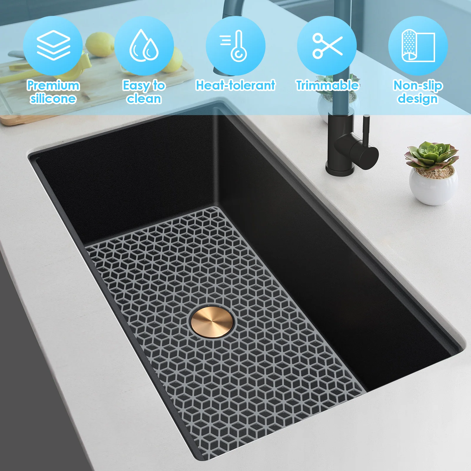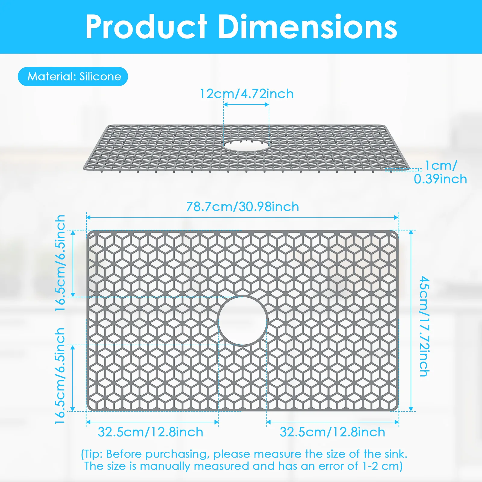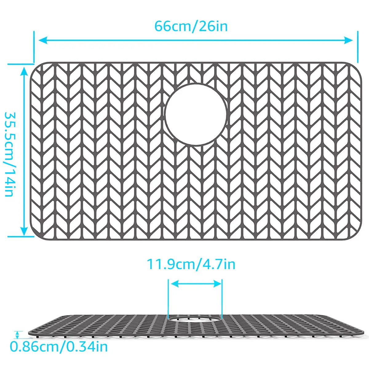 Large compatibilité : ce protecteur d’évier en silicone s’adapte à la plupart des éviers de cuisine, vous pouvez également couper et trancher le tapis pour obtenir le bon drainage (Conseil : veuillez mesurer la taille de votre évier avant d’acheter)