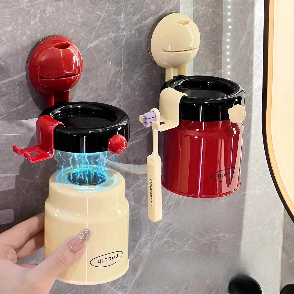 Tasse de lavabo magnétique, tasse de brosse à dents créative murale sans perçage pour la maison, tasse de rangement pour lavabo de salle de bain