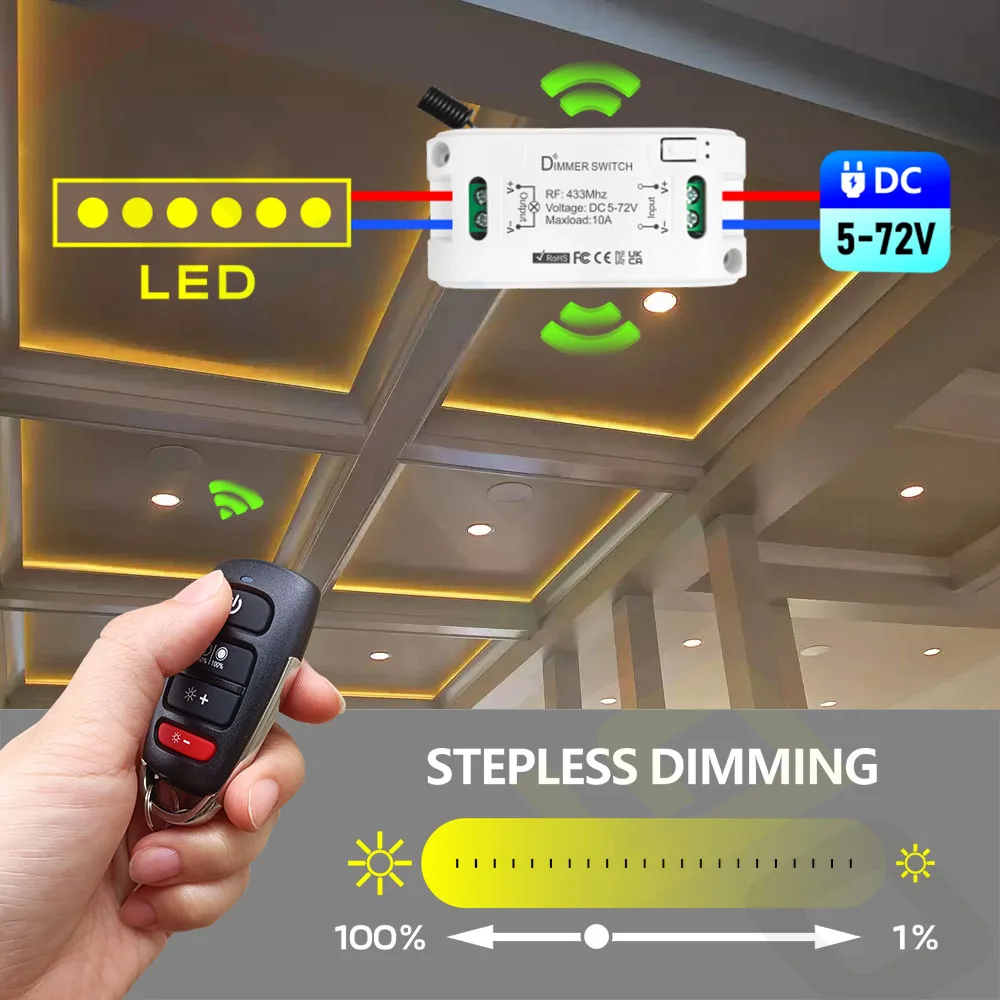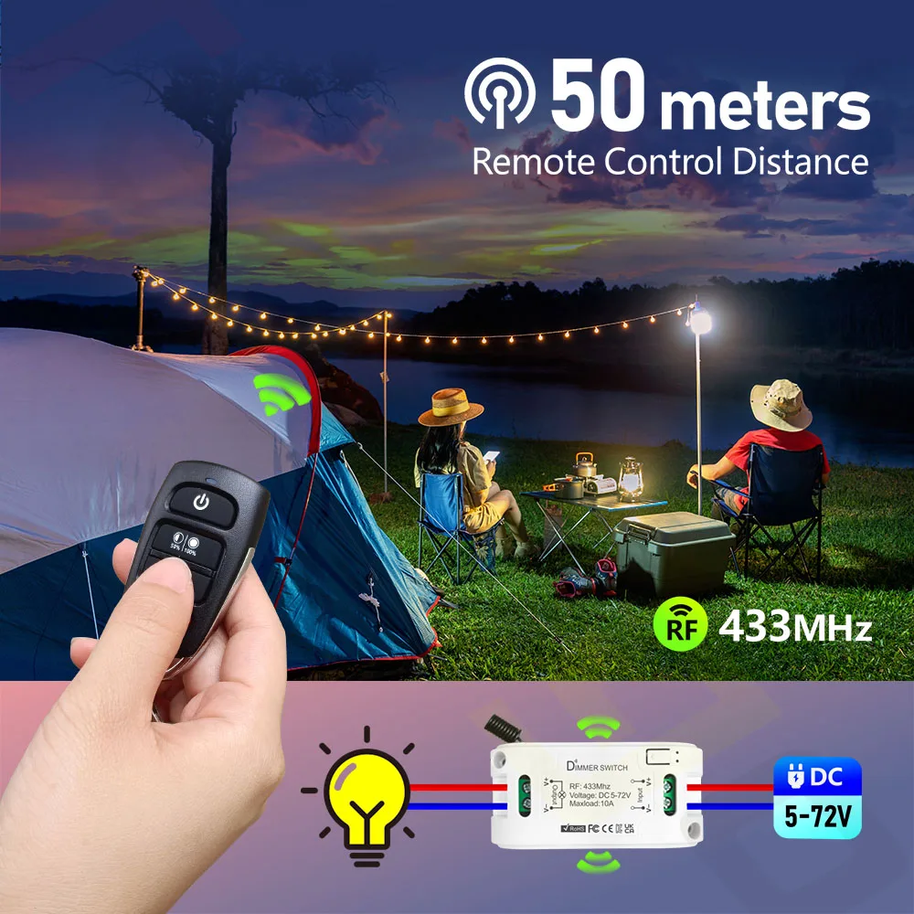 5.DC 5V-72V large tension de fonctionnement, peut fonctionner avec de nombreux appareils, tels que les bandes COB, les bandes LED, les ampoules, etc.