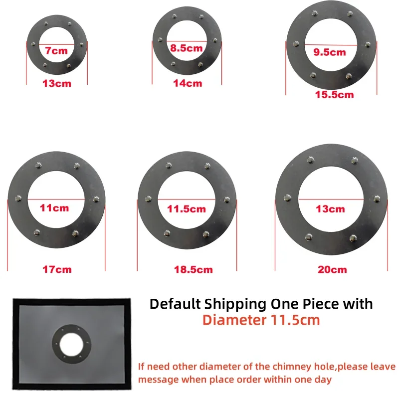 Les deux styles sont livrés avec tous ont une pièce d’expédition par défaut du trou de cheminée de diamètre 11,5 cm. Si vous avez besoin d’un autre diamètre du trou de cheminée, veuillez laisser un message lorsque passer commande dans un jour. Pour que nous pouvons l’expédition comme votre demande réelle