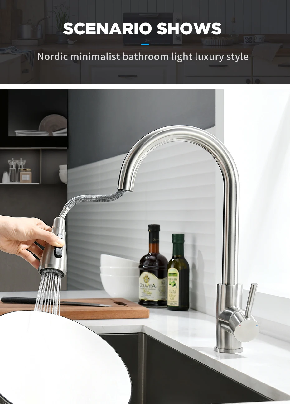 Robinets de cuisine argent mitigeur extractible mitigeur de cuisine monotrou poignée pivotante 360 degrés mitigeur d’eau mitigeur 408906