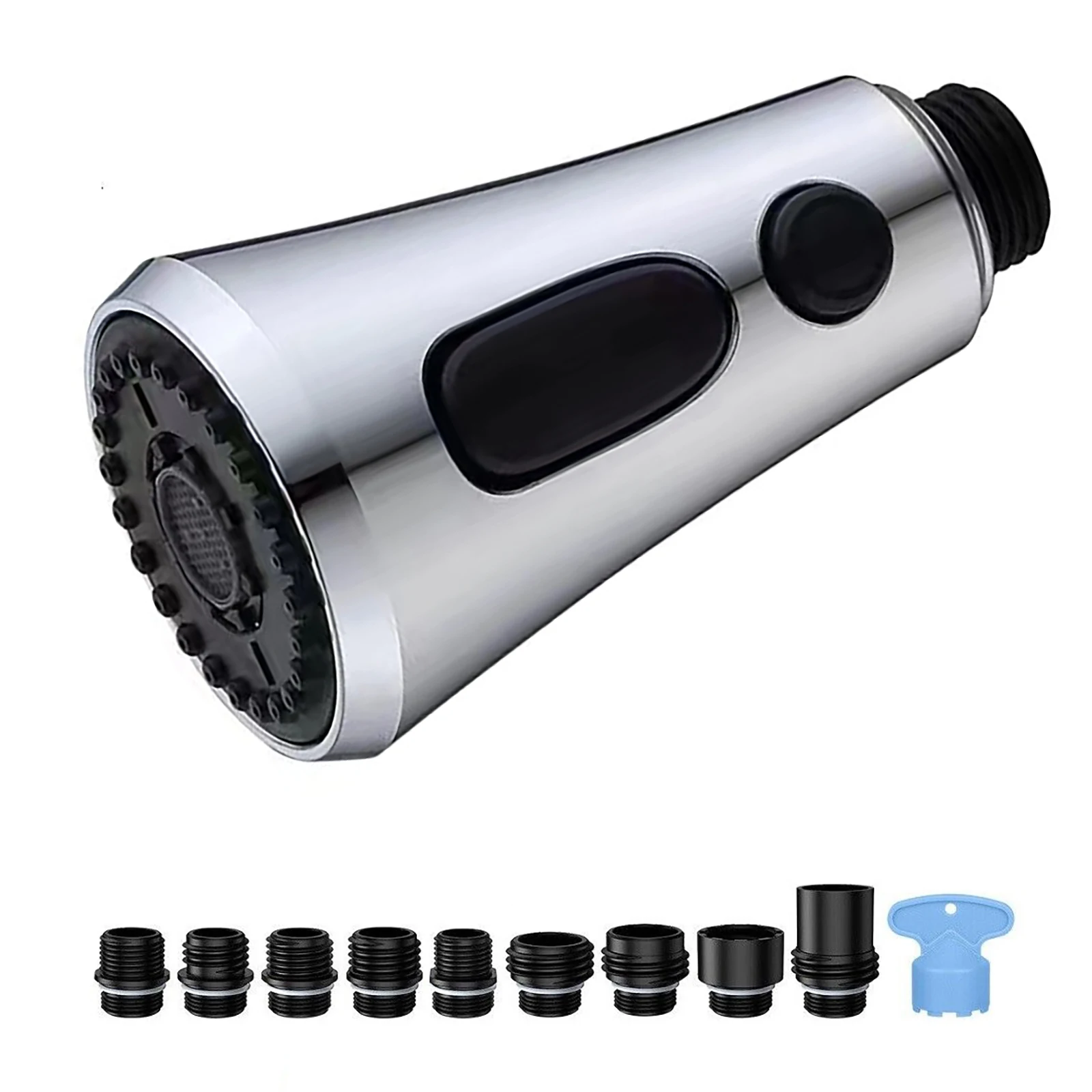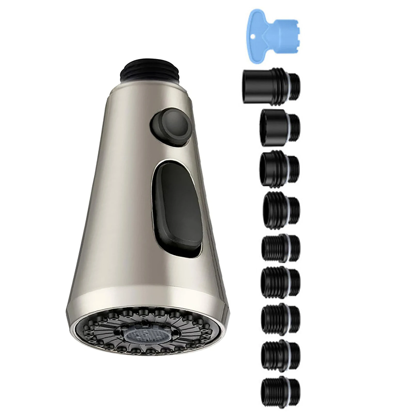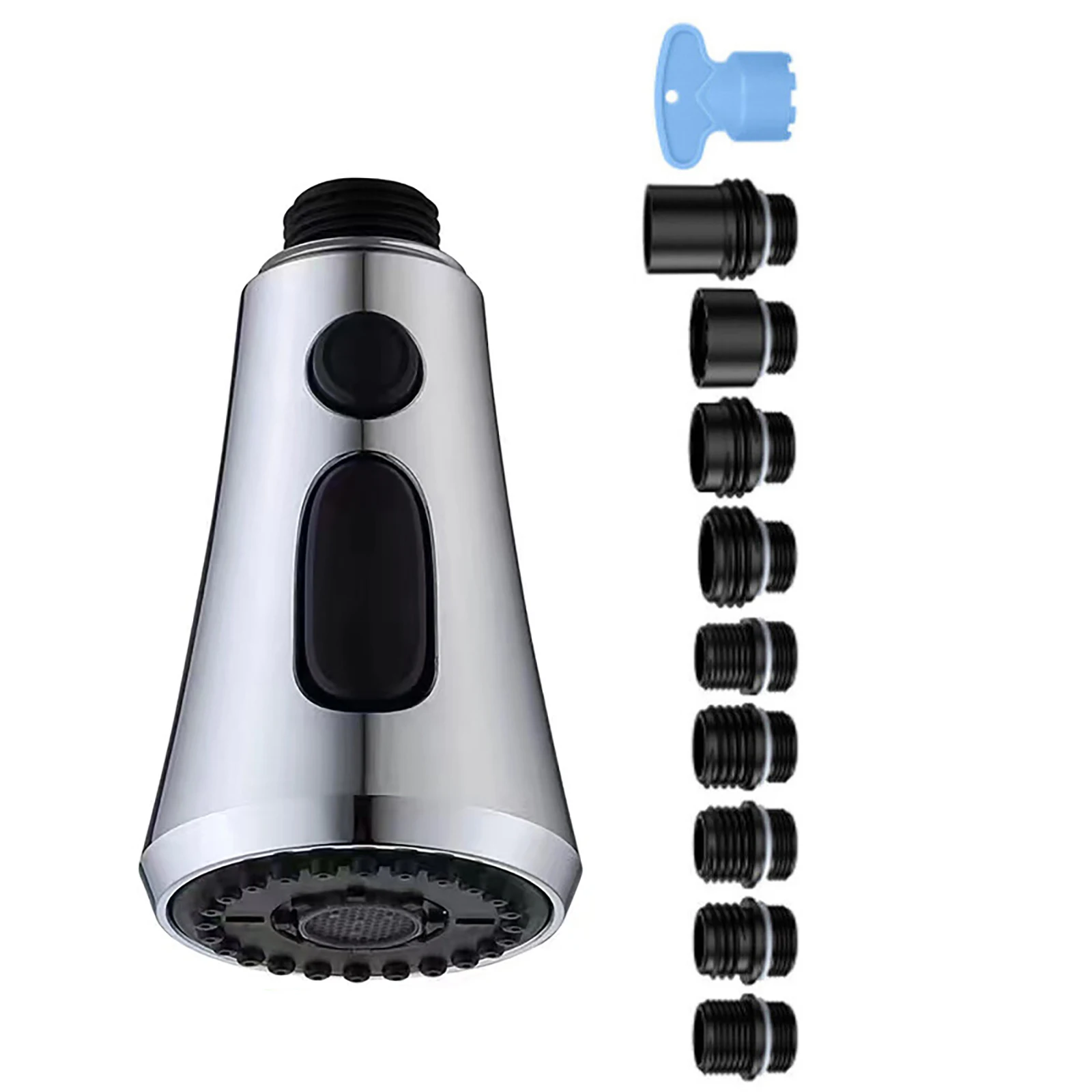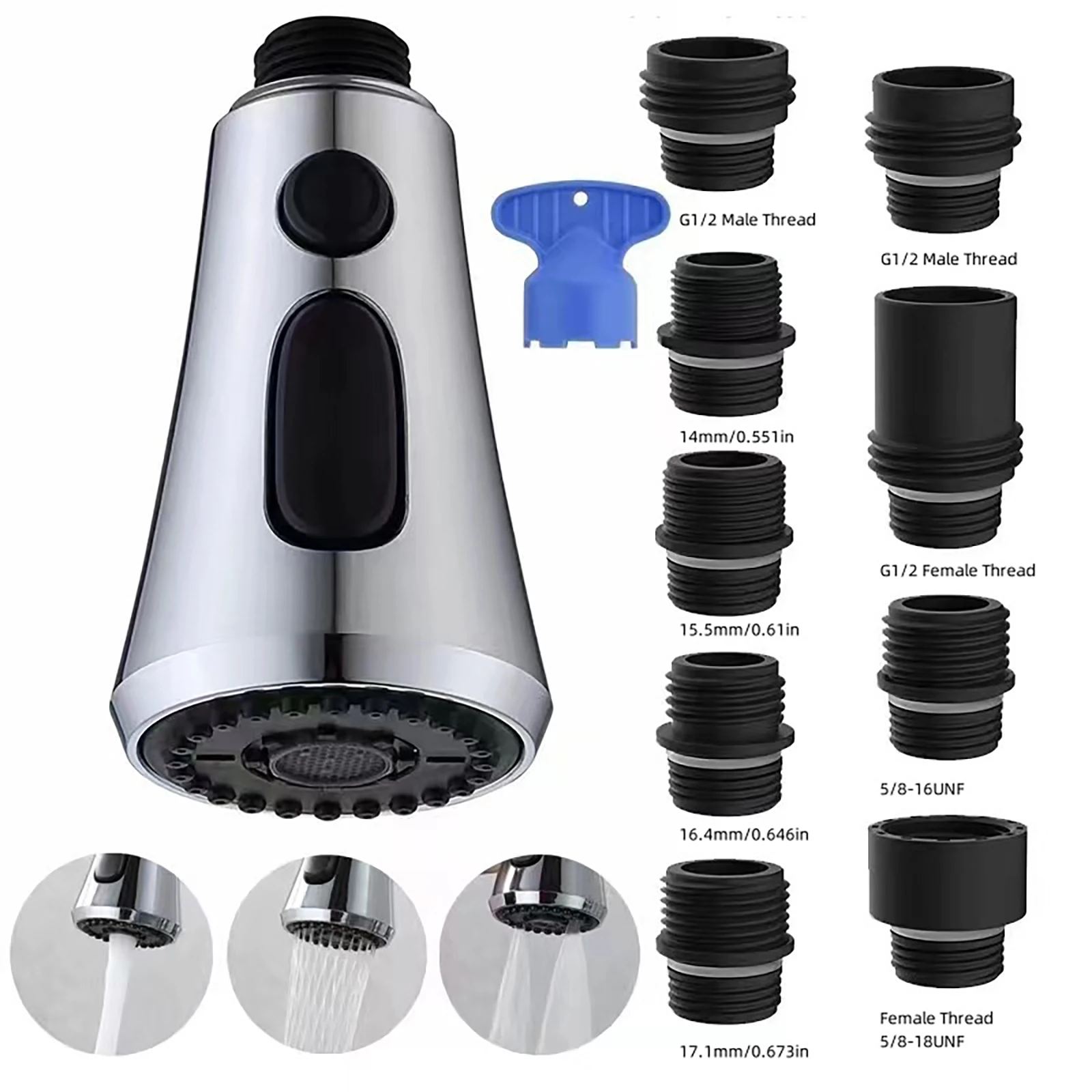 Tête de pulvérisation Robinet de cuisine à tirette G1/2 avec 9 adaptateurs différents Kit de connecteurs en plastique 3 Modes Tête de pulvérisation de robinet à économie d’eau