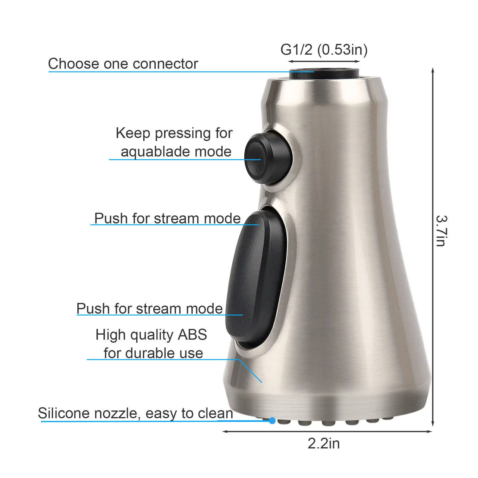 Options de pulvérisation à 3 modes: Profitez de trois modes d’eau: jet d’eau, pulvérisation et aquablade. Le mode aquablade permet un rinçage puissant pour éliminer les débris alimentaires. Basculez facilement entre les modes d’eau en appuyant sur un bouton.