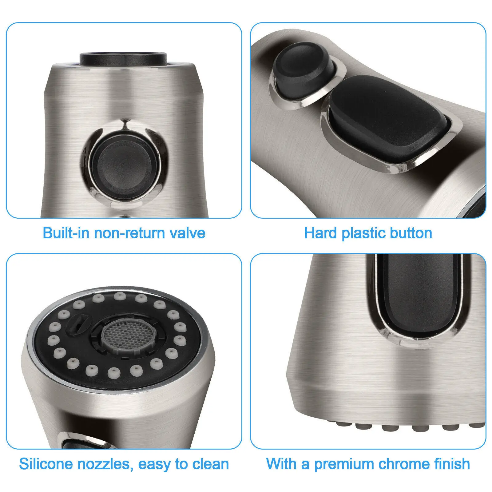 Qualité supérieure: fabriquée en plastique ABS de haute qualité avec une finition chromée de qualité supérieure, notre tête de pulvérisation de robinet à tirette assure la durabilité et la résistance à la rouille, offrant une commodité quotidienne pour divers besoins de rinçage et de remplissage.