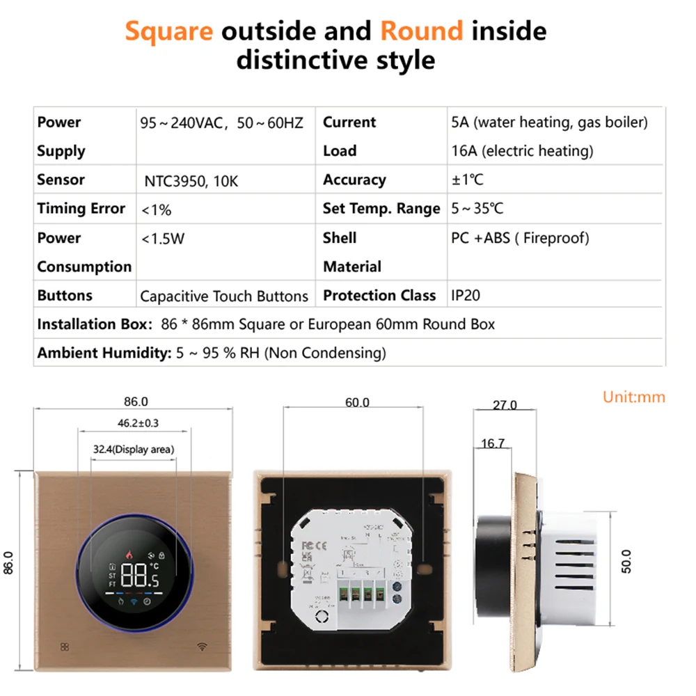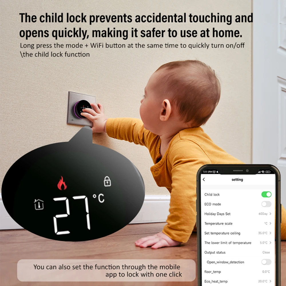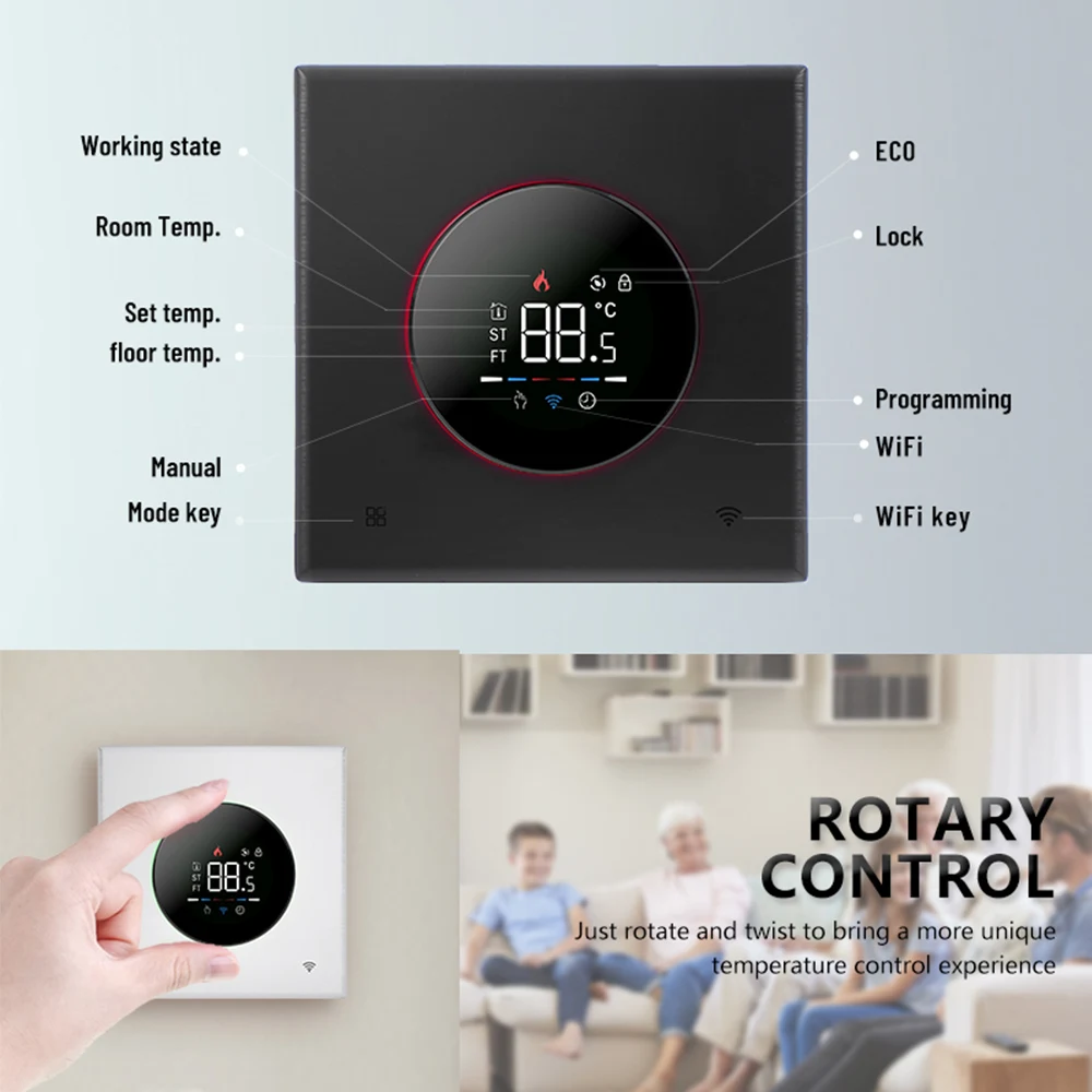 Thermostat WiFi Bouton Intelligent Thermostat Contrôle du Chauffage Chambre à Domicile Chaudière Électrique à Eau et Gaz Régulateur de Température
