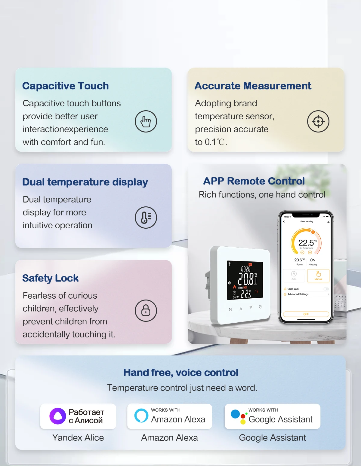 Utilisez simplement votre voix pour contrôler la température de votre maison, prenez en charge Yandex Alice, Google Assistant, Amazon Alexa, vous parlez, ils fonctionnent.