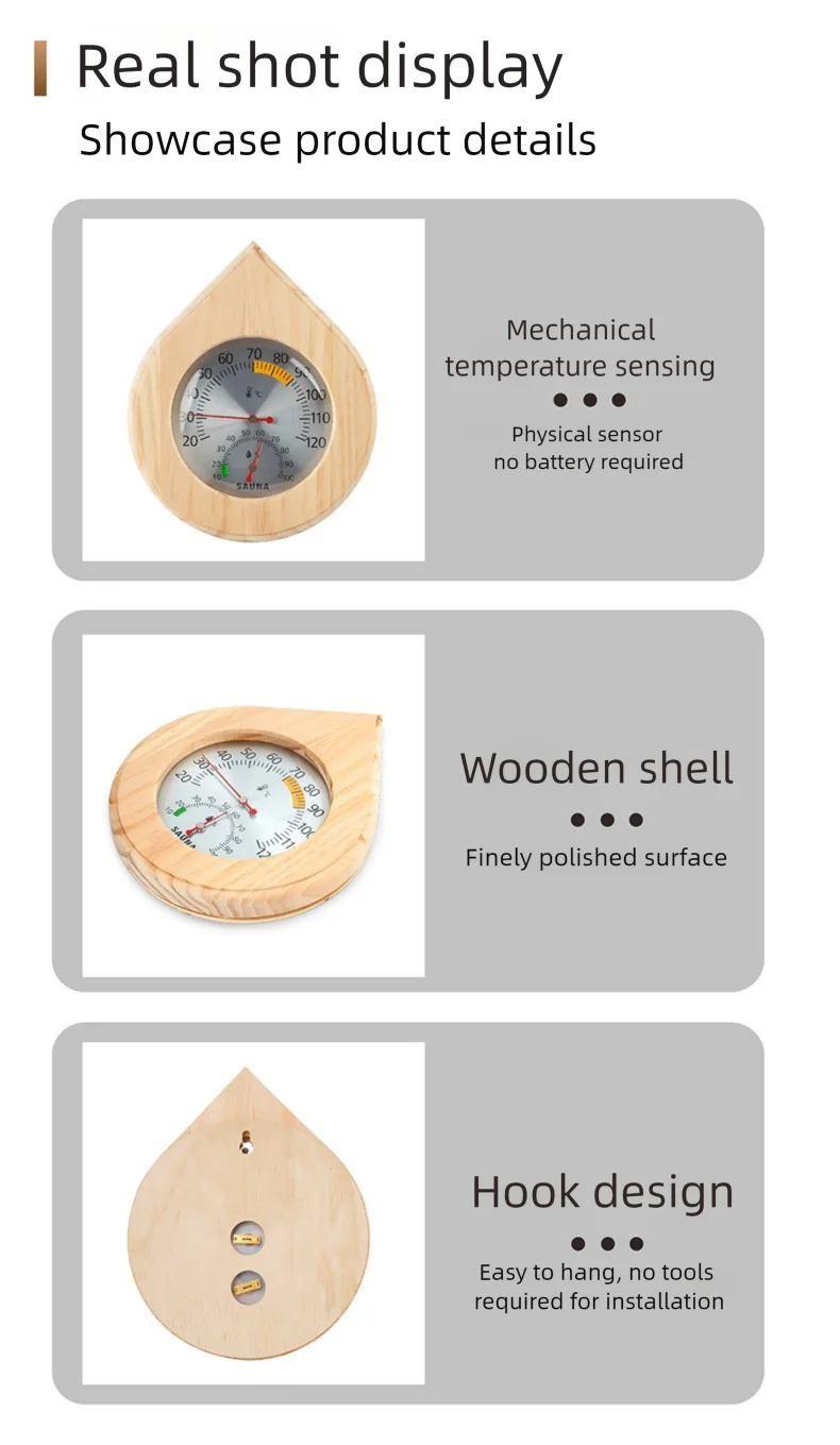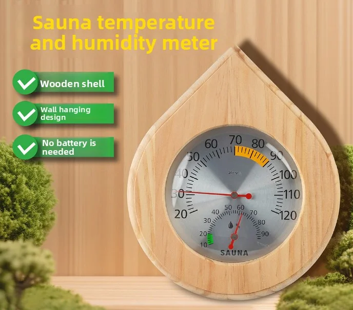 Thermomètre et hygromètre de Sauna en bois, compteur de température et d’humidité pour salle de Sauna, Spa, hammam, suspension murale, sans batterie