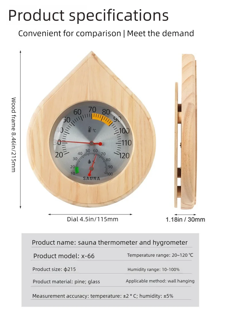 Fabriqué en bois de pin de haute qualité, ce thermomètre de sauna en bois mélangez magnifiquement avec n’importe quelle sauna traditionnelle ou moderne.La son surface lisse et un cadran en verre transparent fait tanto élégant et fonctionnel – Parfaite pour rehausser l’décor naturel de votre sauna.
