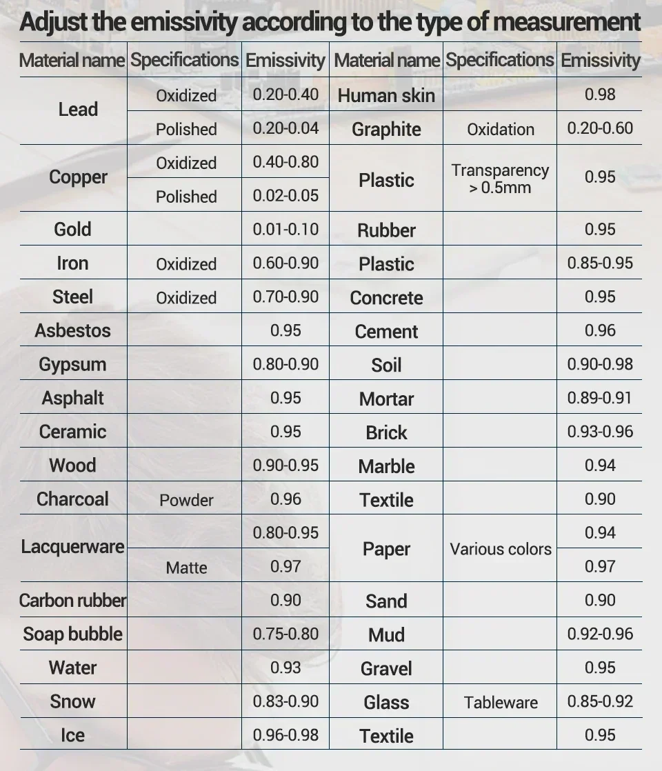 L’instrument de mesure ne peut pas mesurer les surfaces transparentes telles que le verre/plastique, sinon la valeur mesurée par ce instrument sera la température de la surface de l’objet transparent ;