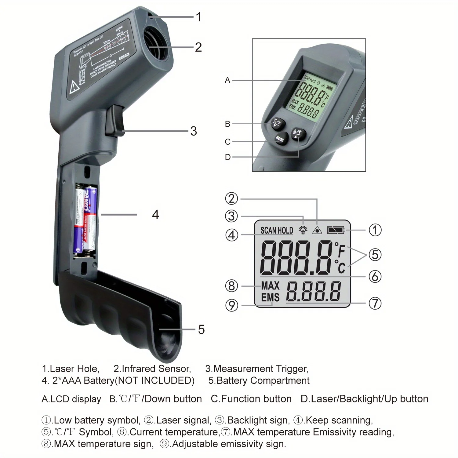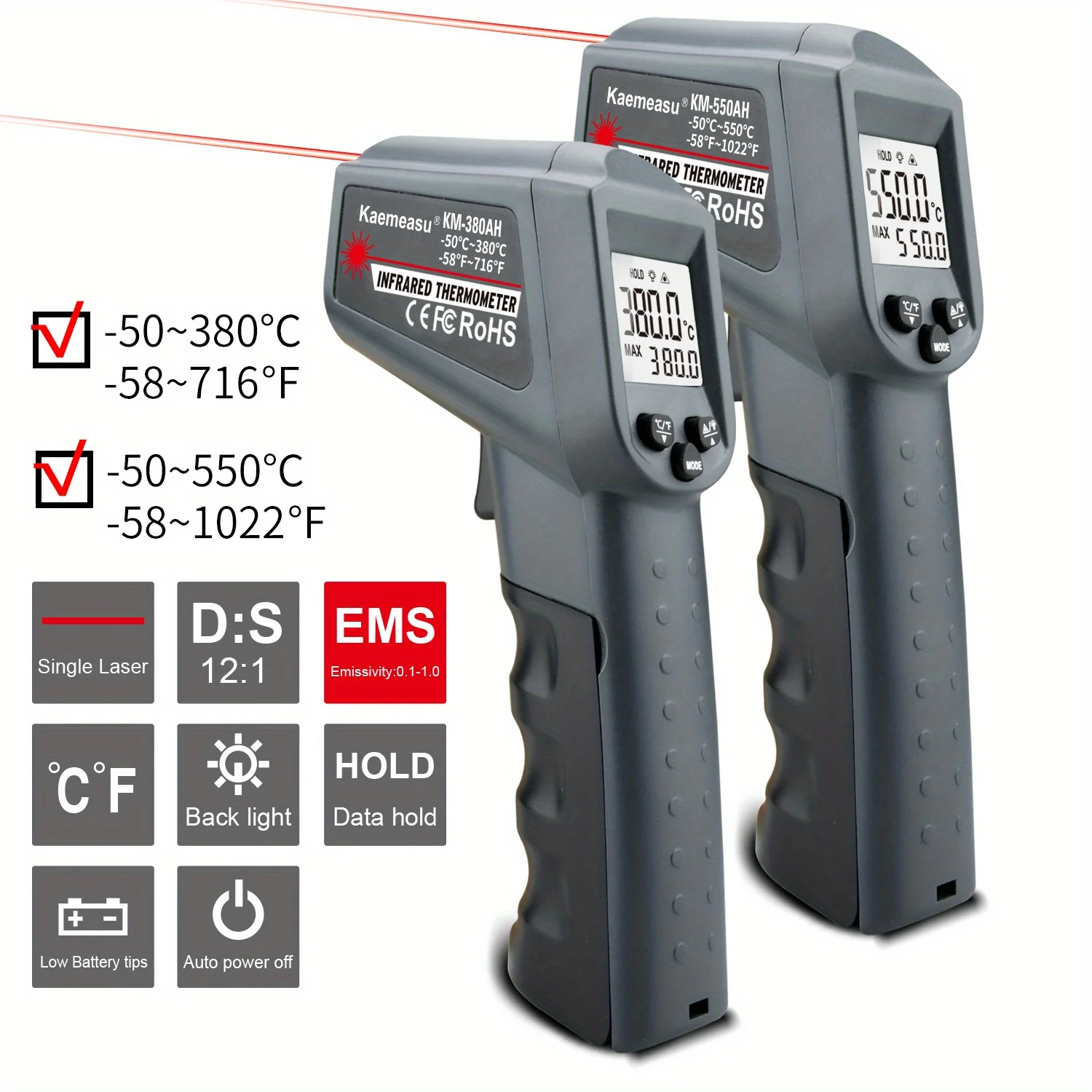 - Max Measuring Temperature: -50~380℃/-50~550℃