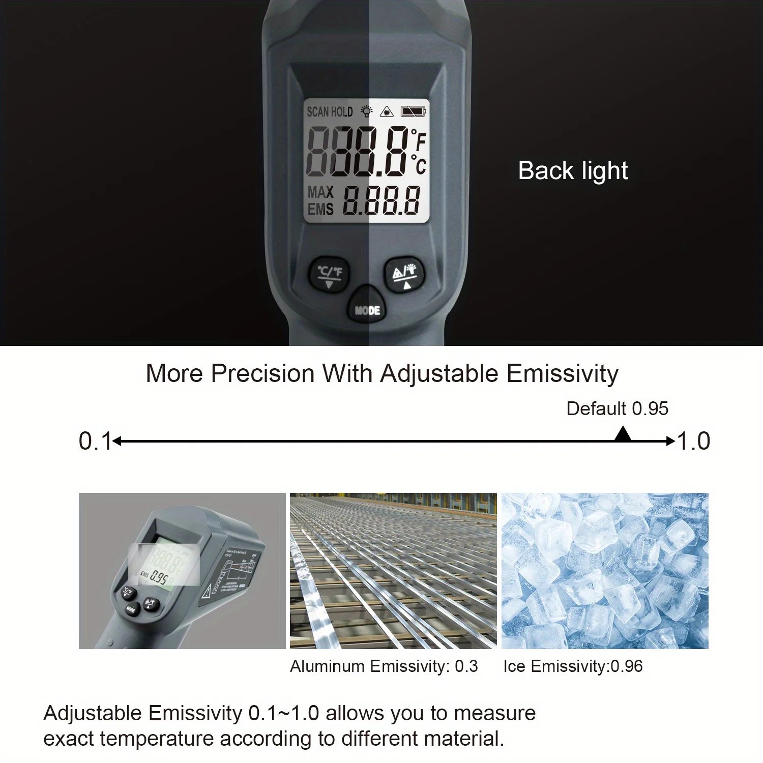 Émissivité : 0,1 à 1,0