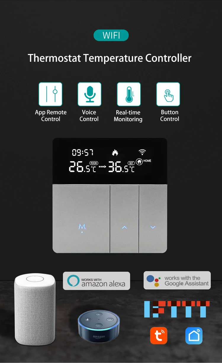 Thermostat de sol chaud Wifi, régulateur de température numérique pour le chauffage de l’eau, chaudière à gaz électrique, Tuya Smart Life Alexa Home 110/220V