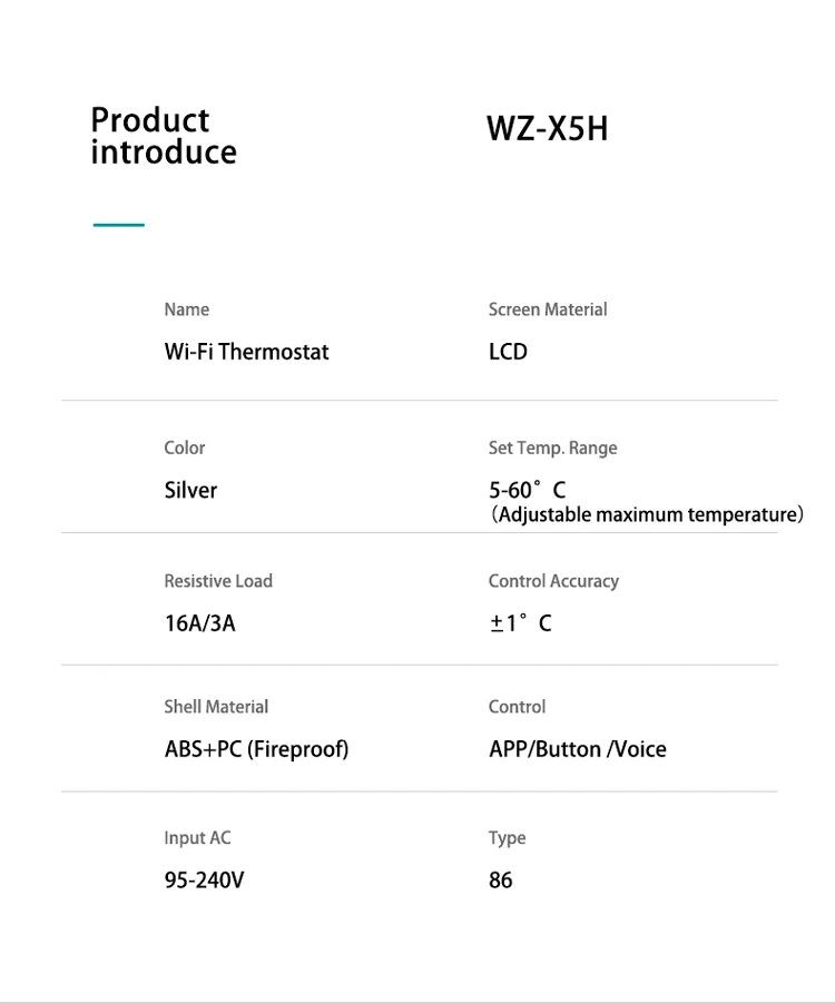 WZ-I8H-GB 16A est pour le chauffage électrique ;