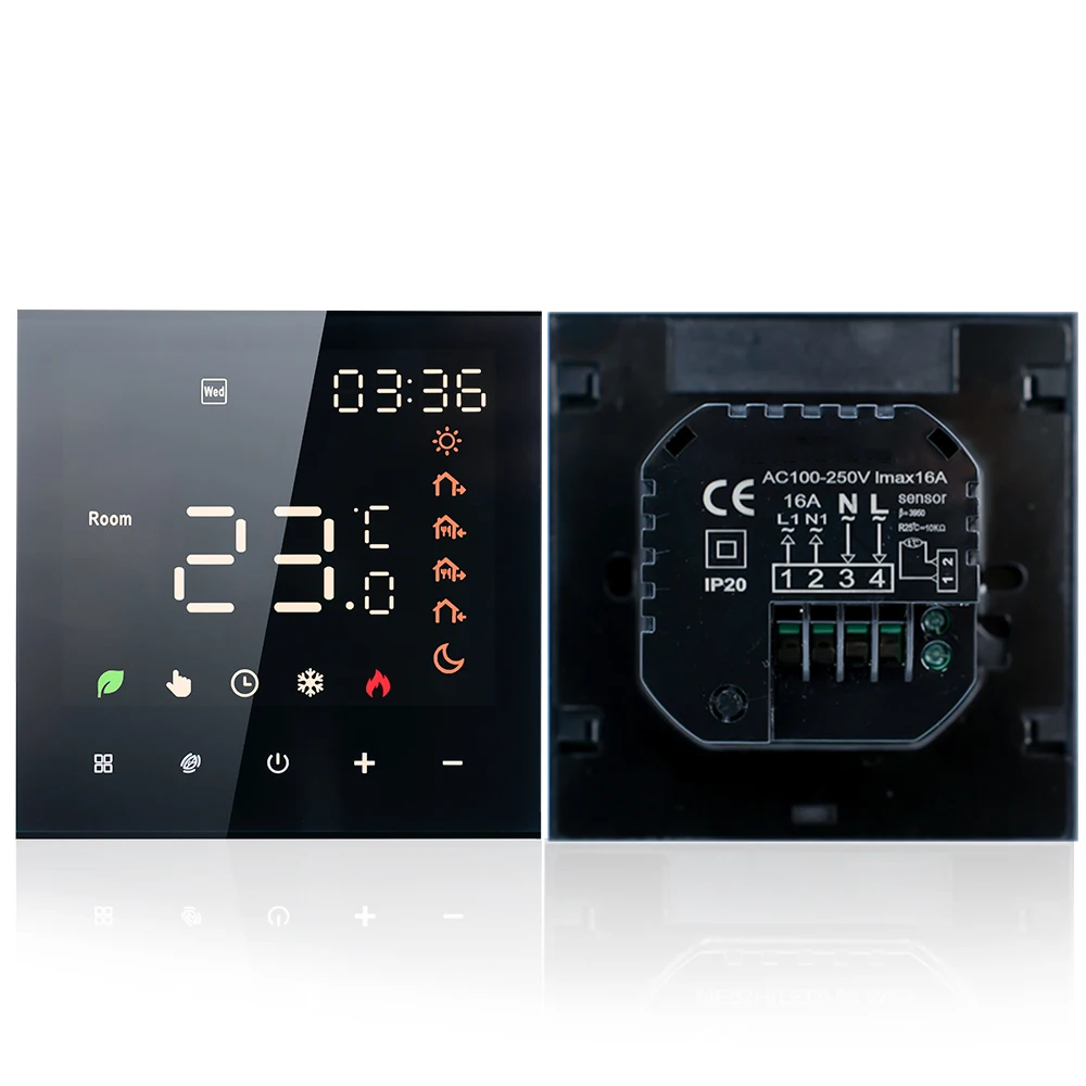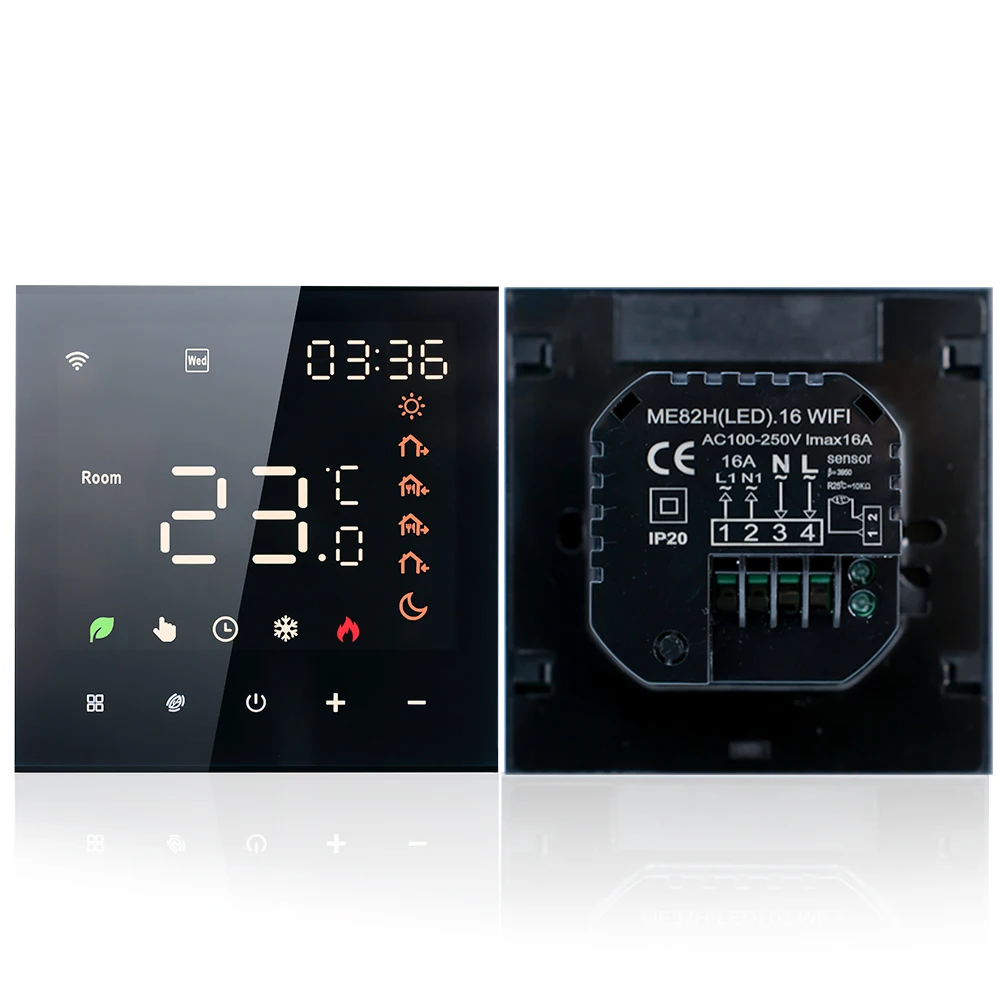 Capteur de température NTC : L’AC 100-250V et 5-70°La plage de réglage C fabrique un thermostat intelligent adapté à une large gamme de maisons et équipé d’un capteur de température NTC, fourniront des lectures précises et garantissent un contrôle précis de la température.