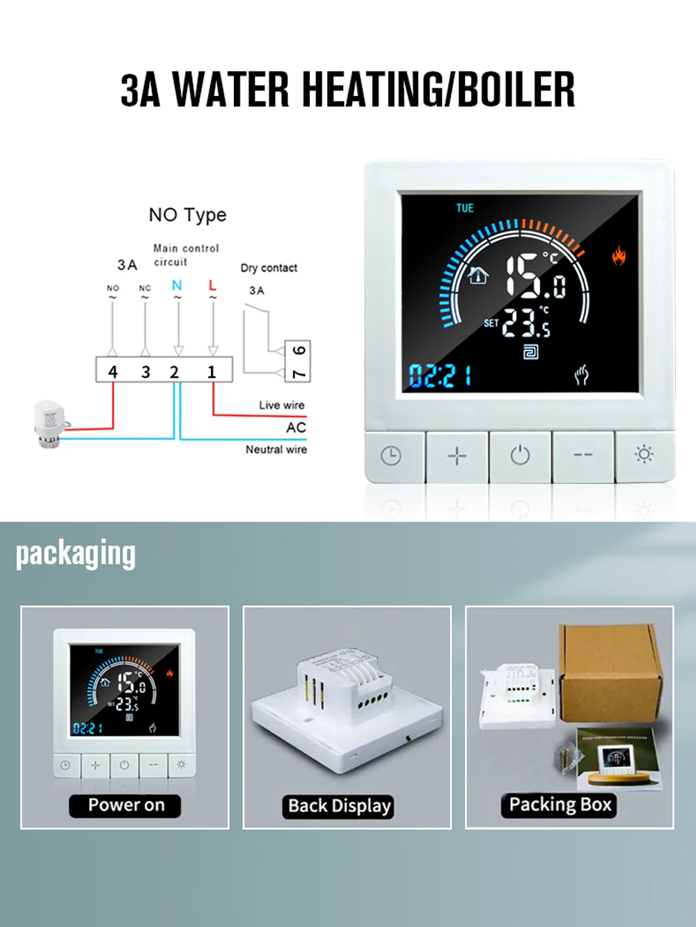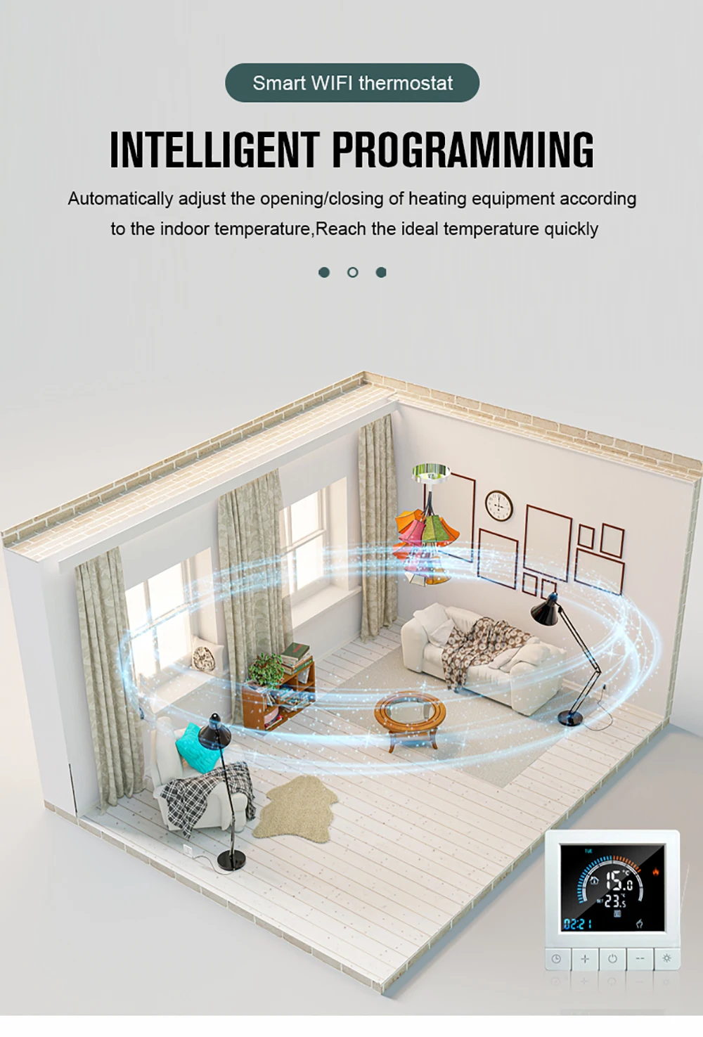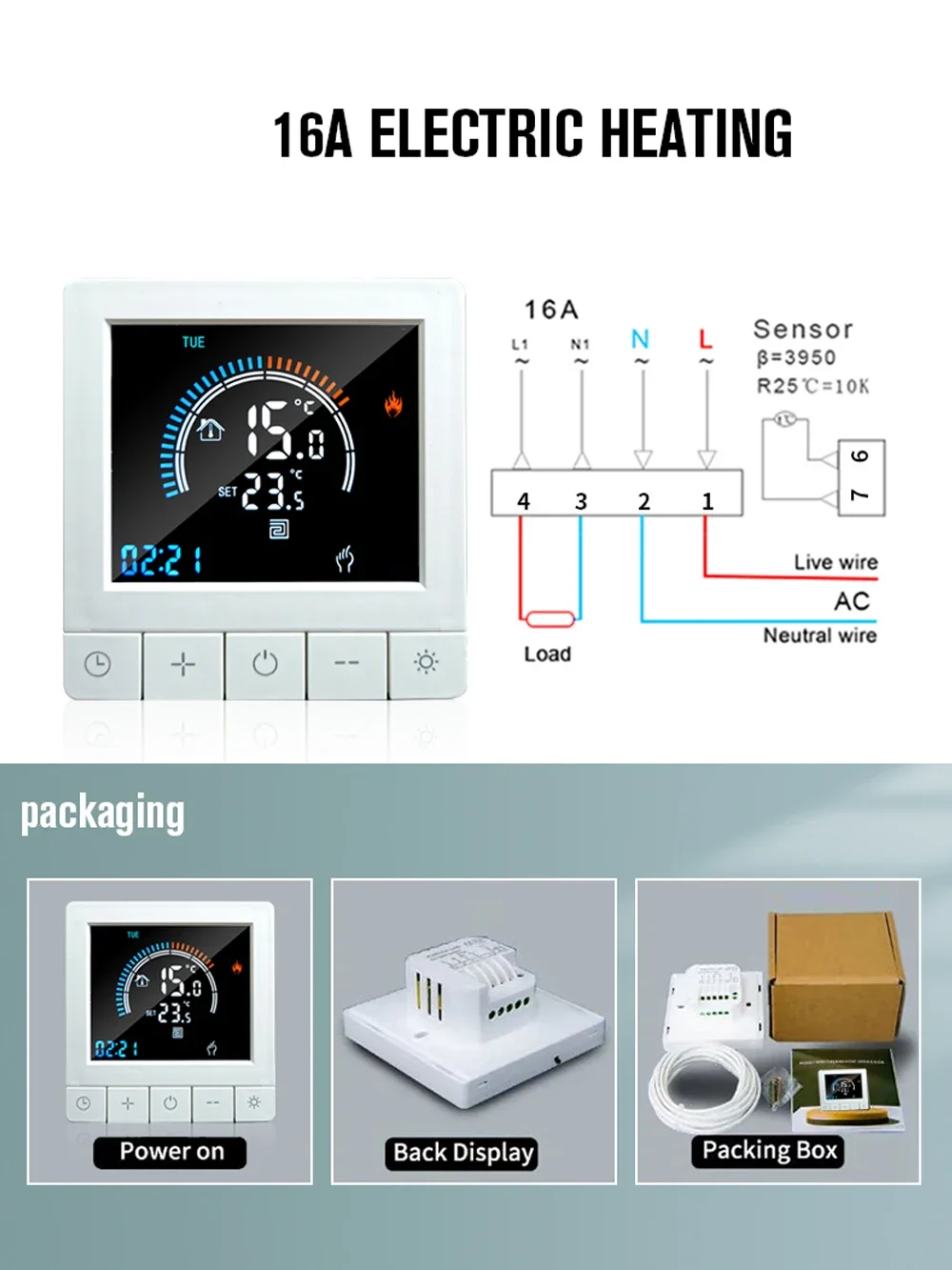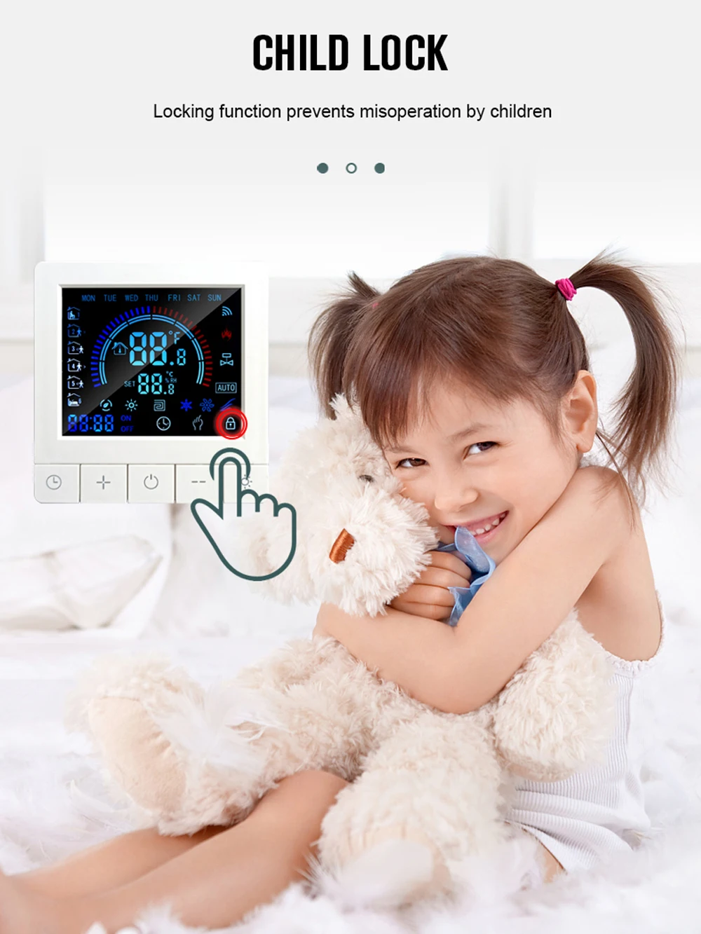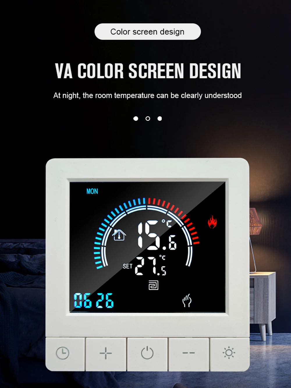 Contrôleur de température pour maison intelligente, Thermostat WiFi pour chauffage au sol et AC avec batterie de secours et outils de verrouillage intelligents pour enfants