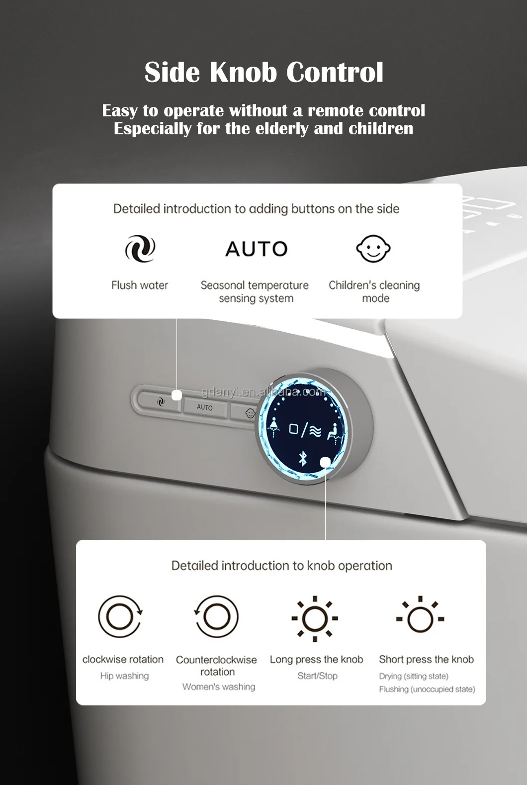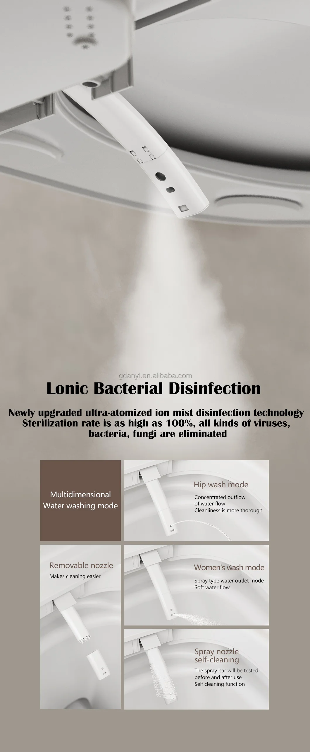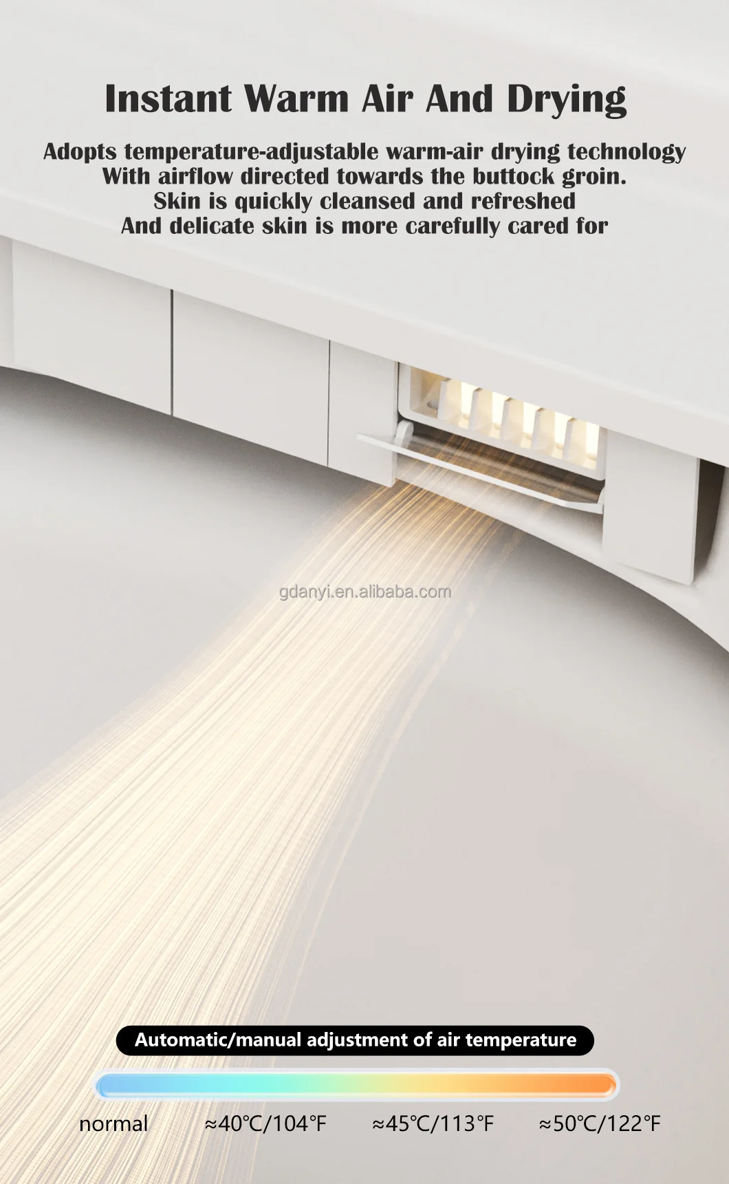 - Feature: Air-drying, Heated Seat, Infrared Therapy, UV Sterilization