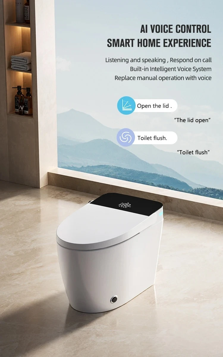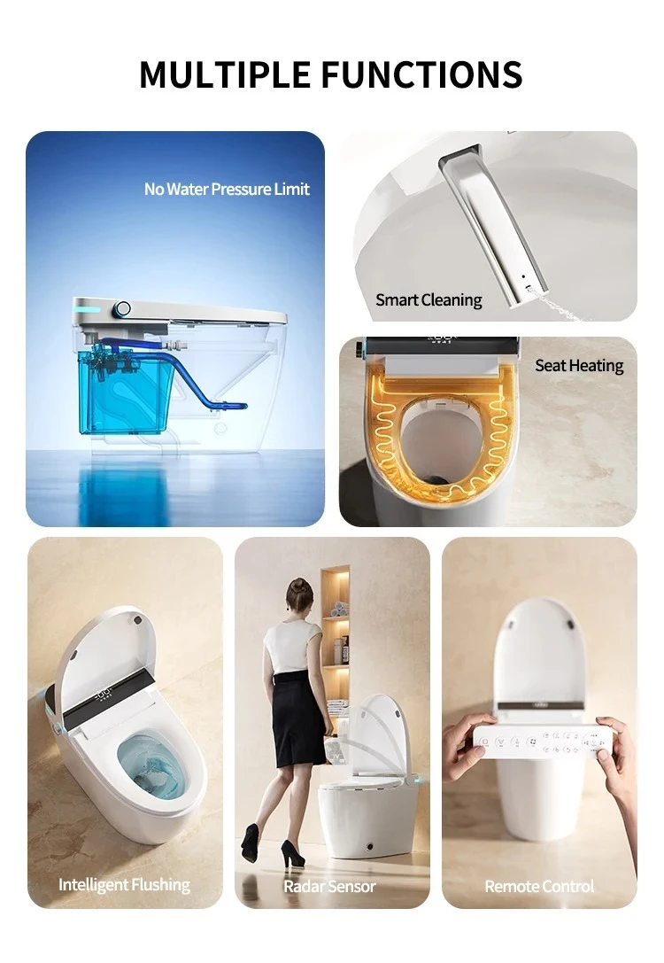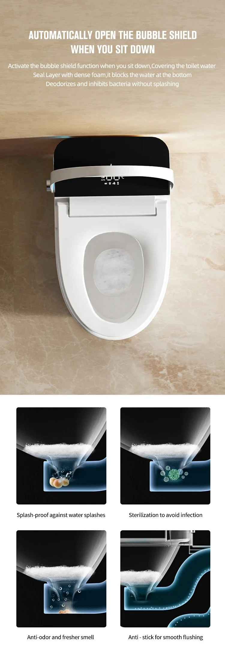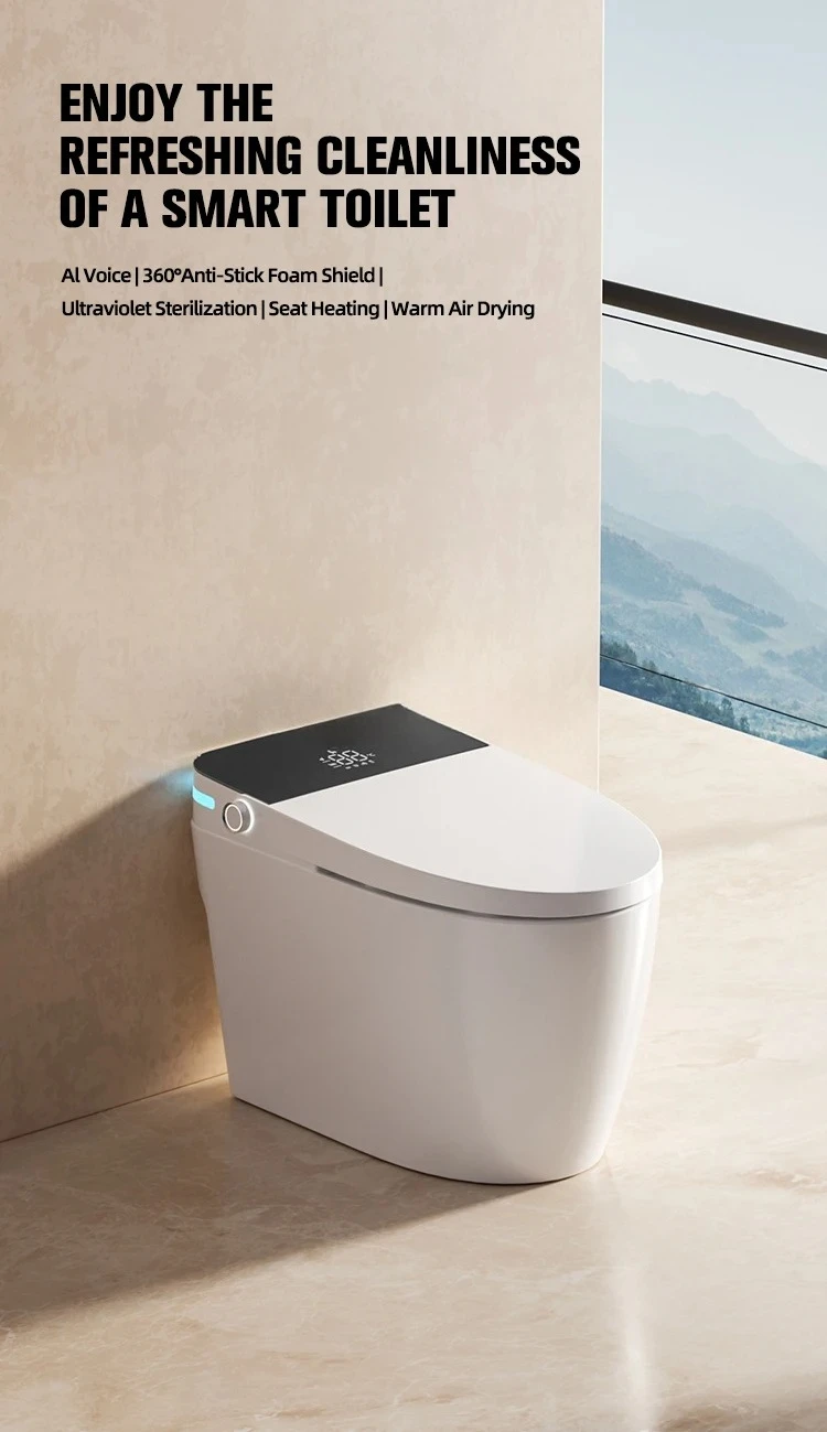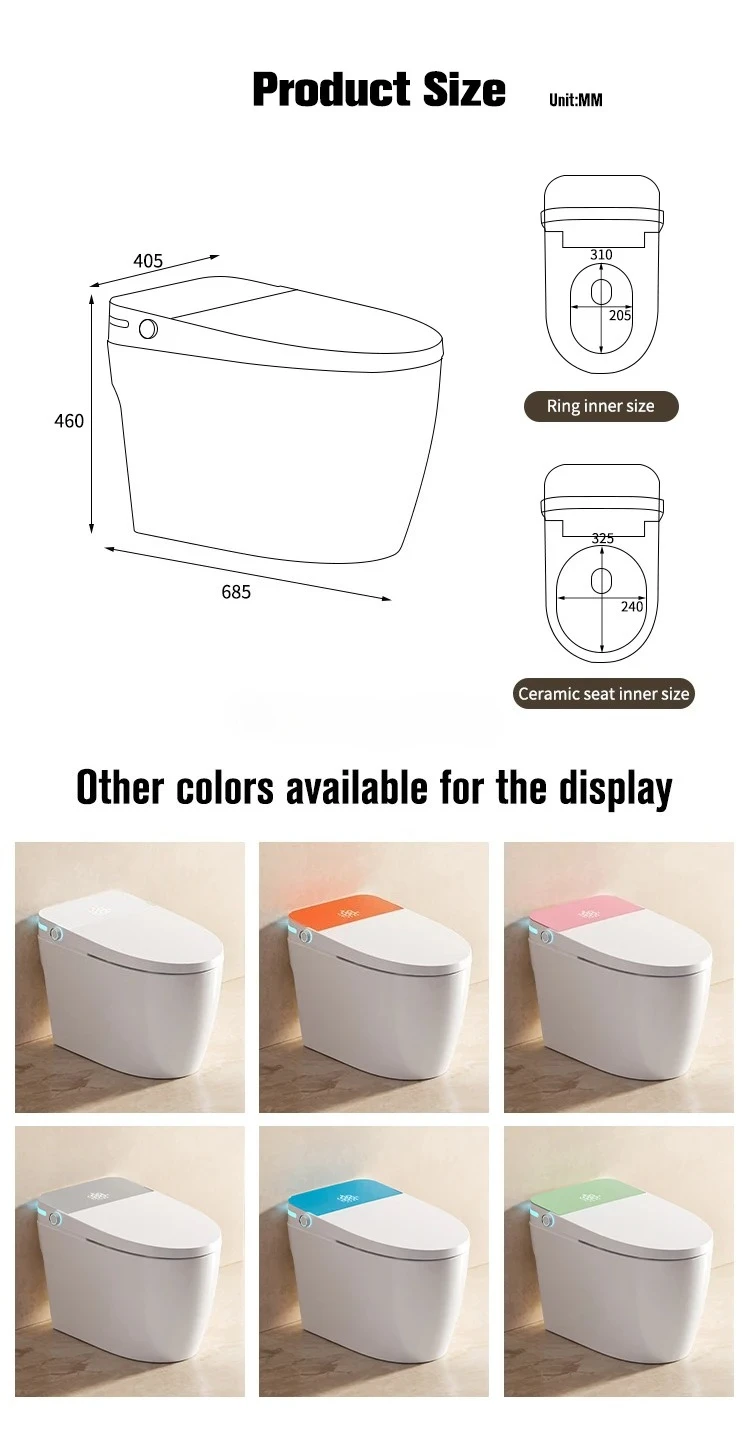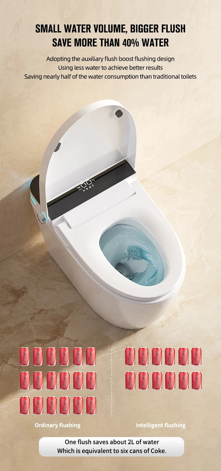 Toilettes intelligentes, veilleuse électrique, capteur de pied, chasse d’eau, bol de salle de bains en céramique avec réservoir