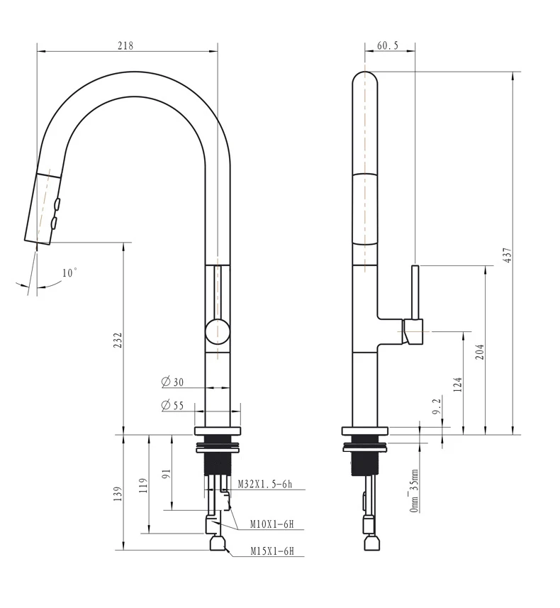- Water discharge method: Pull out the pull-down water outlet